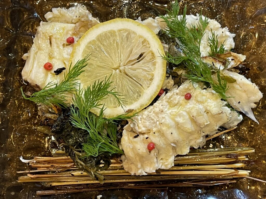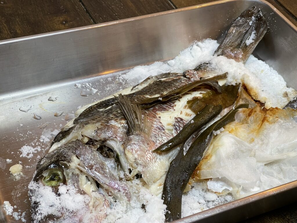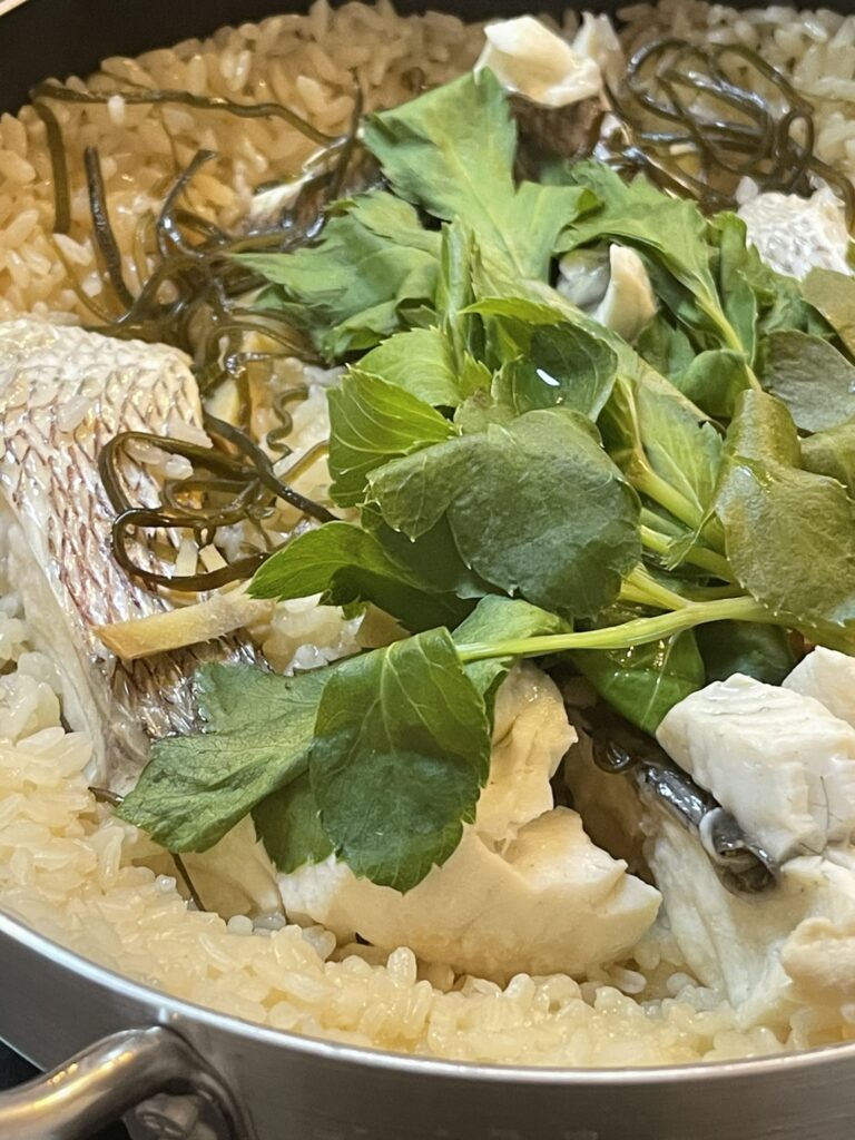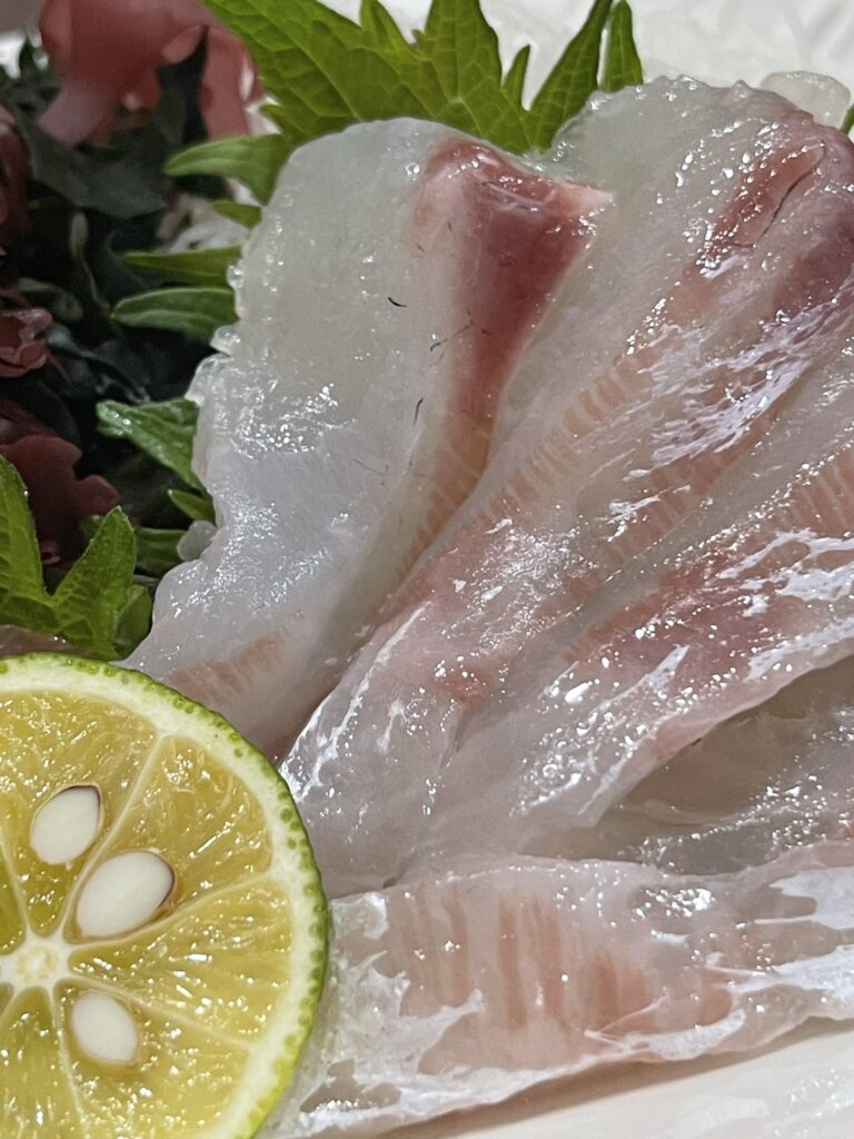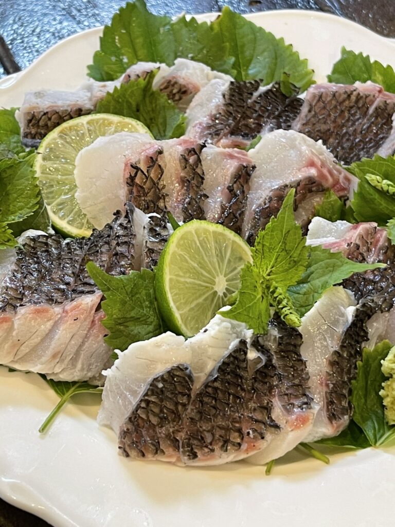 スーパーで買う切り身の鯛は大体100gあたり500円~800円くらいだと思います。ところが、式根鯛平君(養殖真鯛)は丸ごととはいえ、100g100円と超お得なので、半身は鯛めし、残りはホイル蒸しや鍋物など、使い回すとコスパがいいはずです。頭やアラも煮たり、汁物にして美味しくいただけます。香味野菜といっしょに煮出して漉せば、最高の鯛スープが取れます。おひとりの場合は、連泊でないと食べきれないかもしれません。その時は保冷バックを買って、冷凍ペットボトルと一緒に入れて、ぜひお土産にしてください。適切に保存すれば、捌いてから1週間まで刺身でいただけます。むしろ熟成して美味しくなると、通の人は、それぞれこだわって寝かせています。