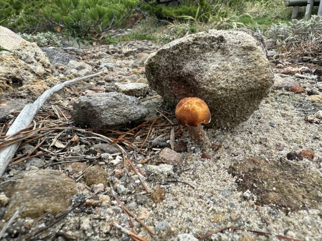 基本的に式根島は「暖地」ですので、温暖な地域に生えるきのこが多くなります。きのこが多く見つかる場所の樹種は主に「松」「シイ」。式根島の表土は火山放出物未熟土といって、有機物の蓄積が少なく、砂地が多いのが特徴的です。