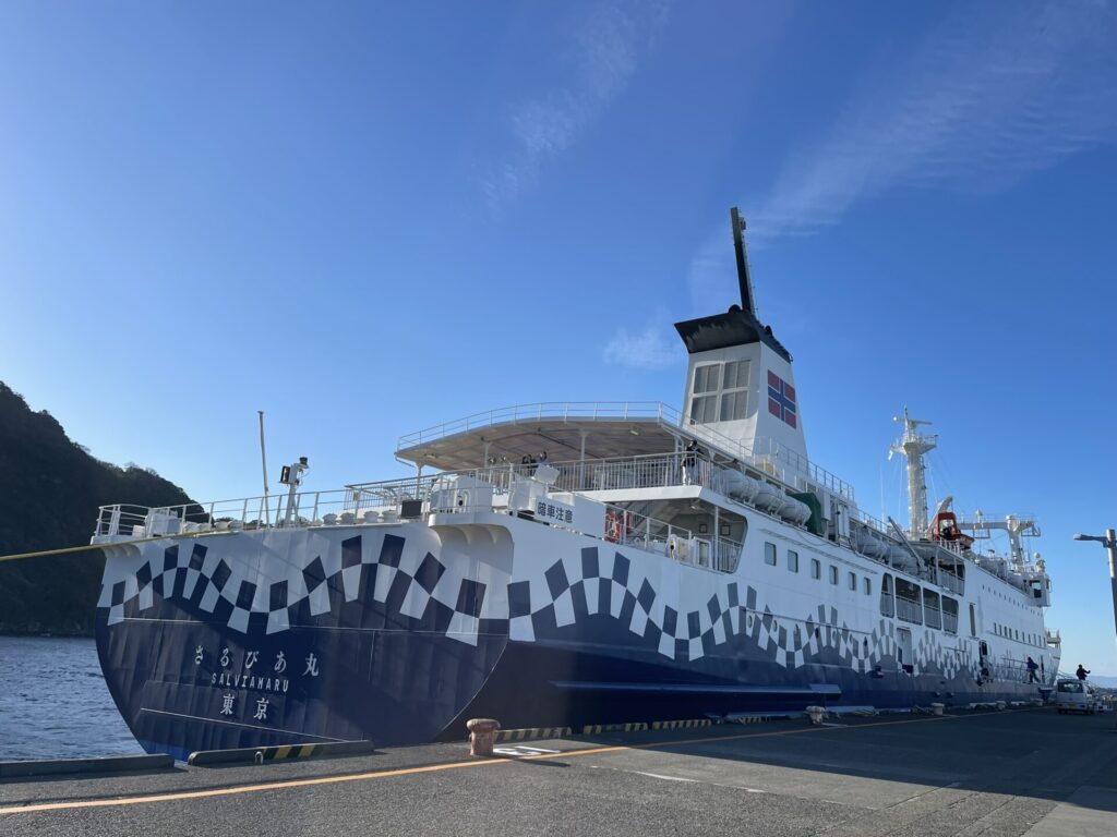 お疲れさまでした。竹芝に着くまで、のんびり船旅を楽しんでください!新島に近づくとさるびあ丸に無賃乗船するカラスも良かったら探してみてください。
