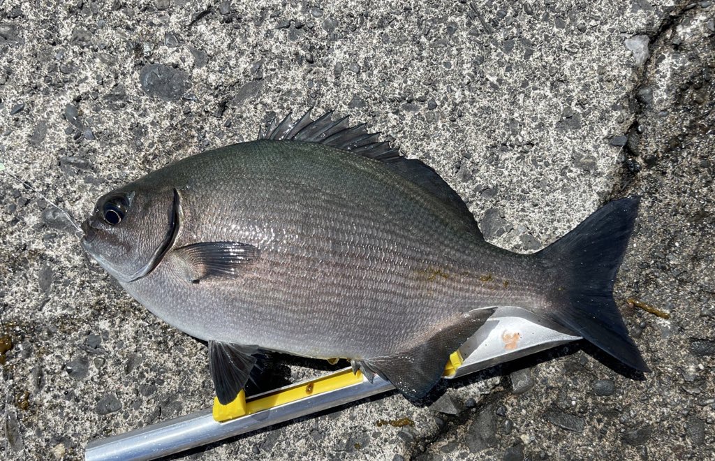 グーンと引いて「大物か!」と喜んだつかの間、白っぽい魚影が見えて「シロメジナや-!」と落胆するのは式根島釣り師お約束の流れ。と、いいつつ、実はイスズミには複数の種類があり「メジナに似ているのは意外とうまい」と知る人は知っていた。そのメジナに似てると言われるのが、おそらくこのノトイスズミ。魚体が茶色がかり、背ビレ・臀ビレが短く高い。なんだか汚い?茶色いイスズミが釣れたら持ち帰ってみてもいいかもしれない(自己責任で)。元々、イスズミは伊豆諸島では「ササヨ」と呼ばれ、食文化もある身近な魚。またの別名は「ババタレ」。釣りあげると脱糞するが、そういうものなので驚かないように。