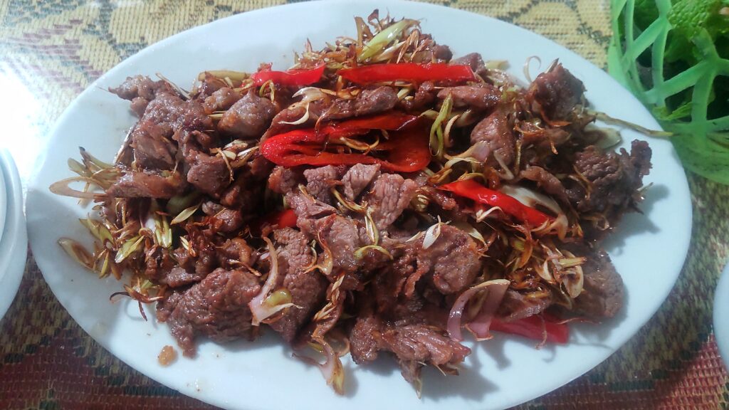 細かく刻んだレモングラス、唐辛子、ニンニク、ショウガと共に、ナンプラーや砂糖で炒めるらしい(AI)。