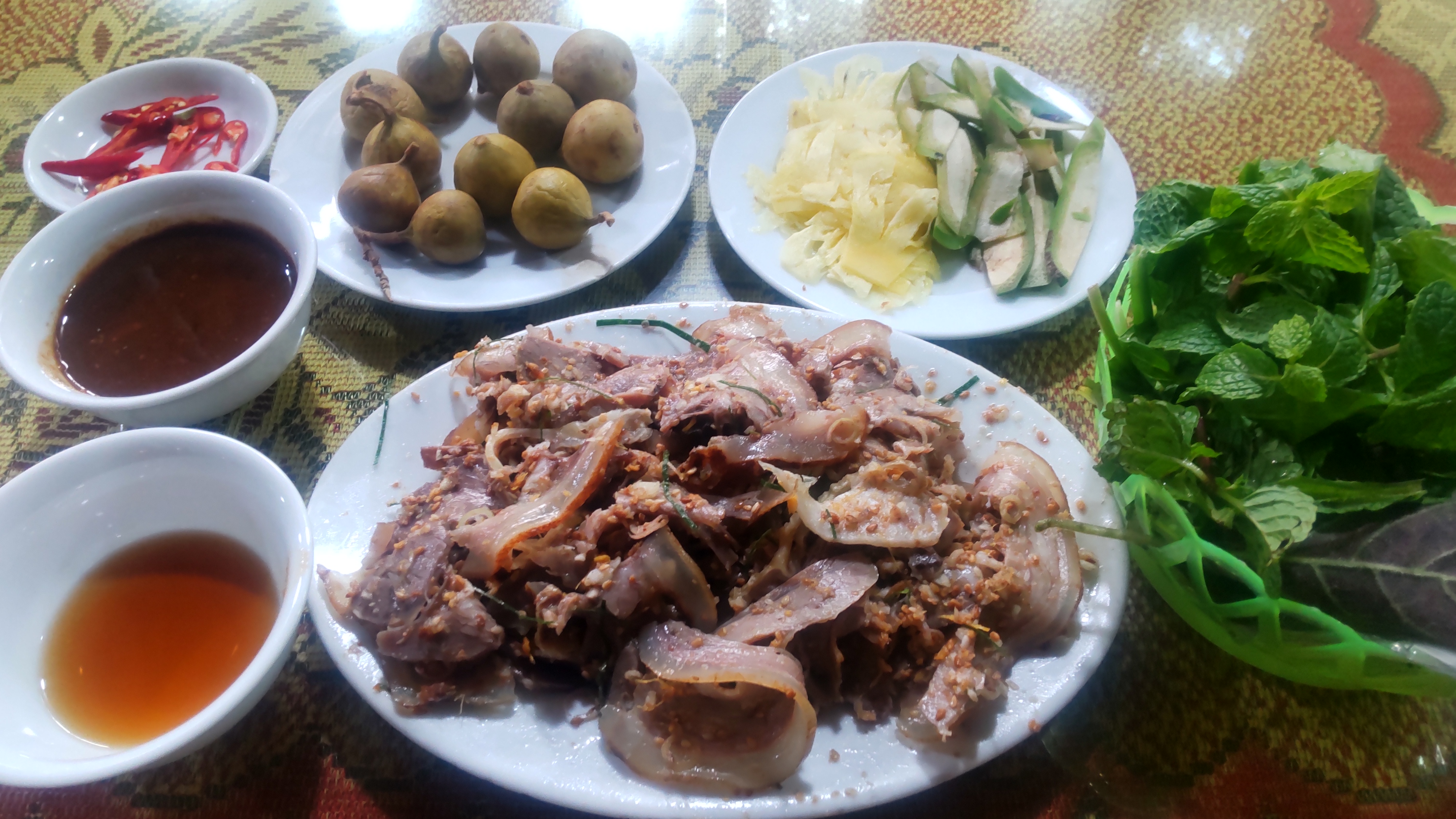 これも、よく合い、パパイヤやパイナップルなども併せてライスペーパーに包んで食べる。