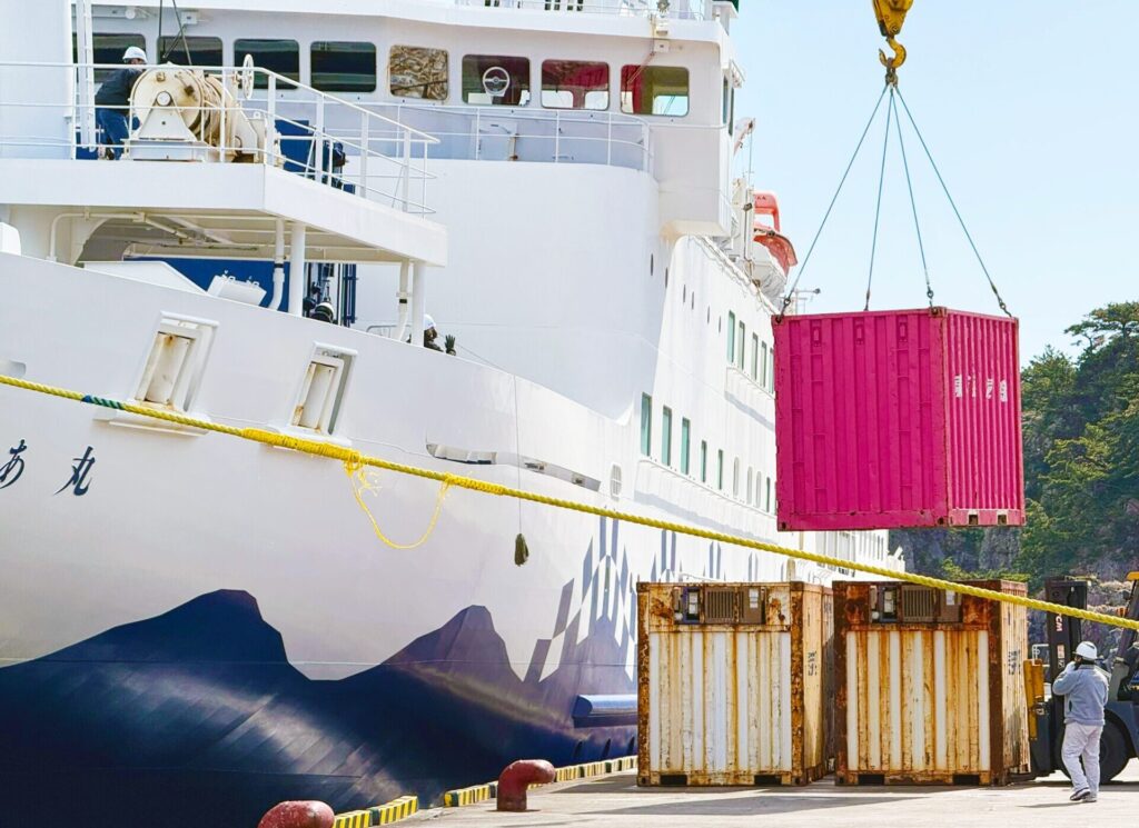 東海汽船が2021年4月に導入し、大島・利島・新島・式根島・神津島間で活躍する希少なピンクのコンテナ「愛コン」をご存じでしょうか。「愛コン」の「愛」は、おそらく高速ジェット船セブンアイランド「愛」からとったネーミングで、お揃いのド派手なピンク色がラブリー。目立つので、注意していればすぐわかります。