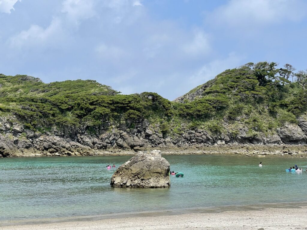 式根島の海水浴場は、どこも遠浅の深い入り江で、外洋の潮流の影響をうけません。小さなお子さんがいるご家族の海水浴や、シュノーケリングも安心してできます。ダイビングデビューにももってこい!