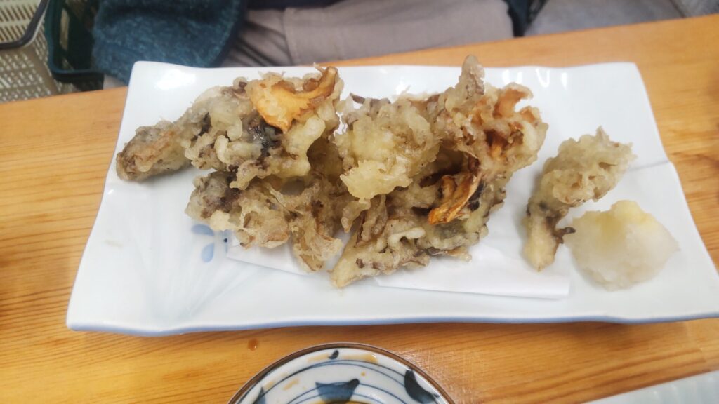 かつおの効いたつゆで食べるかき揚げも美味。