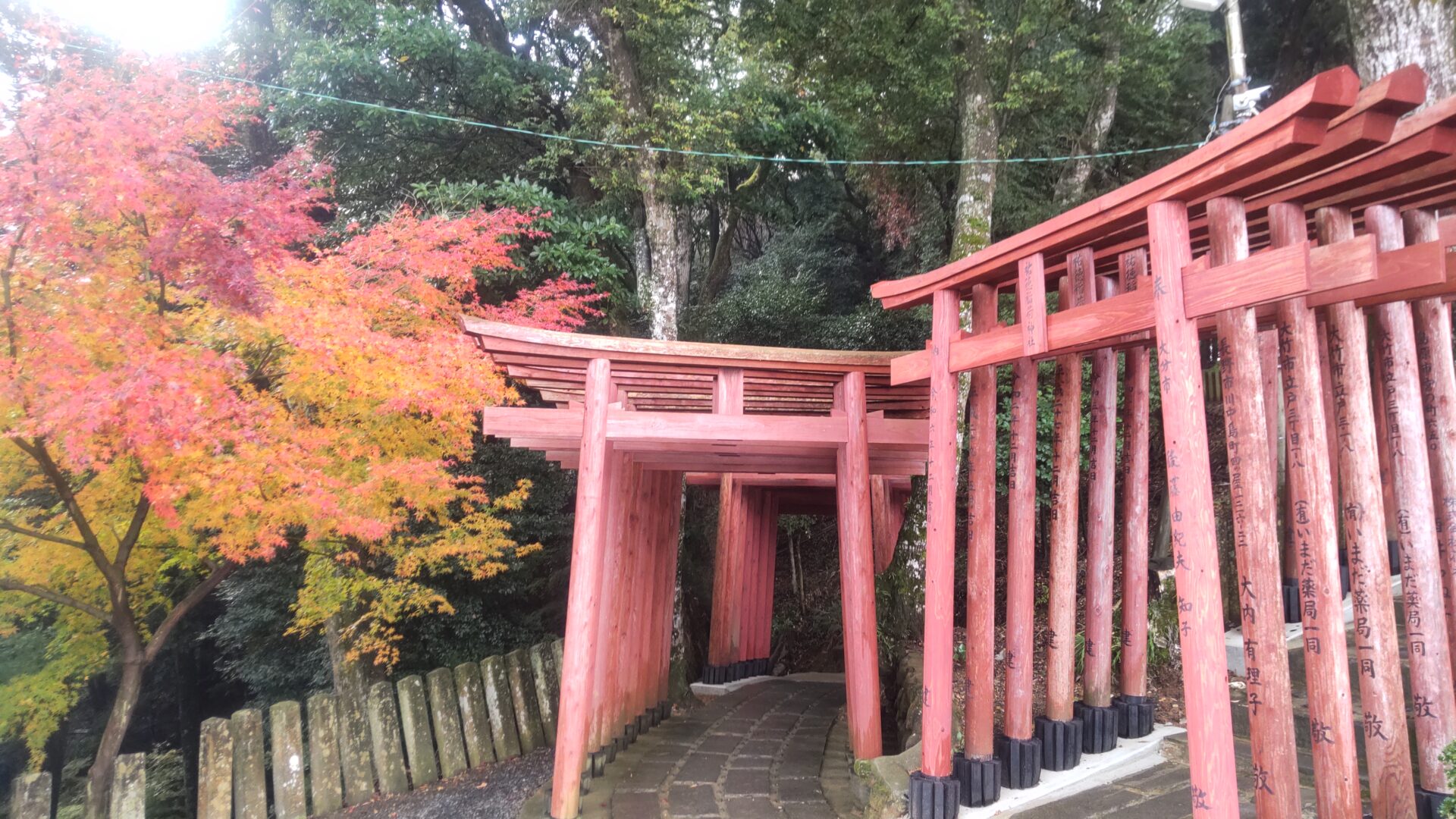 階段を上ると、鳥居が連なる。
