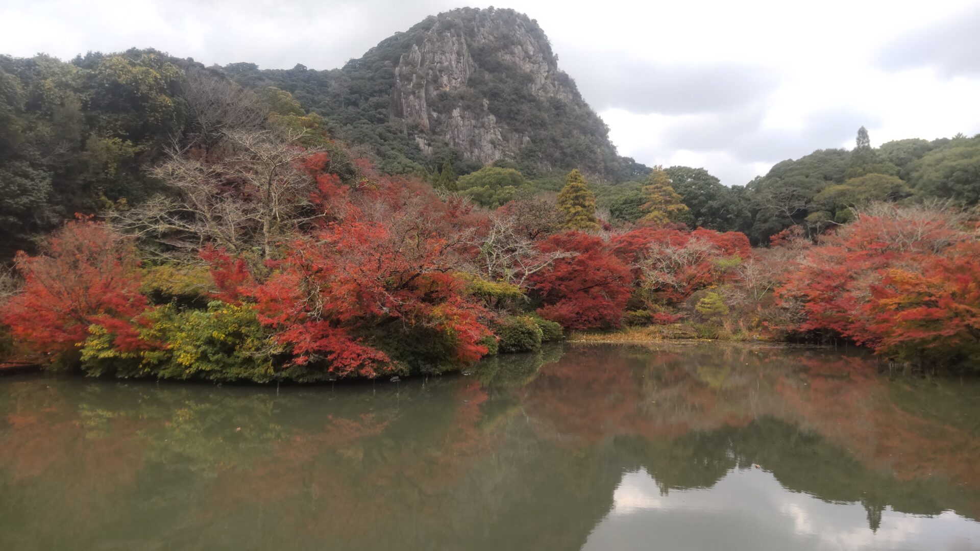 中に入ると、池と山と紅葉の三重奏。