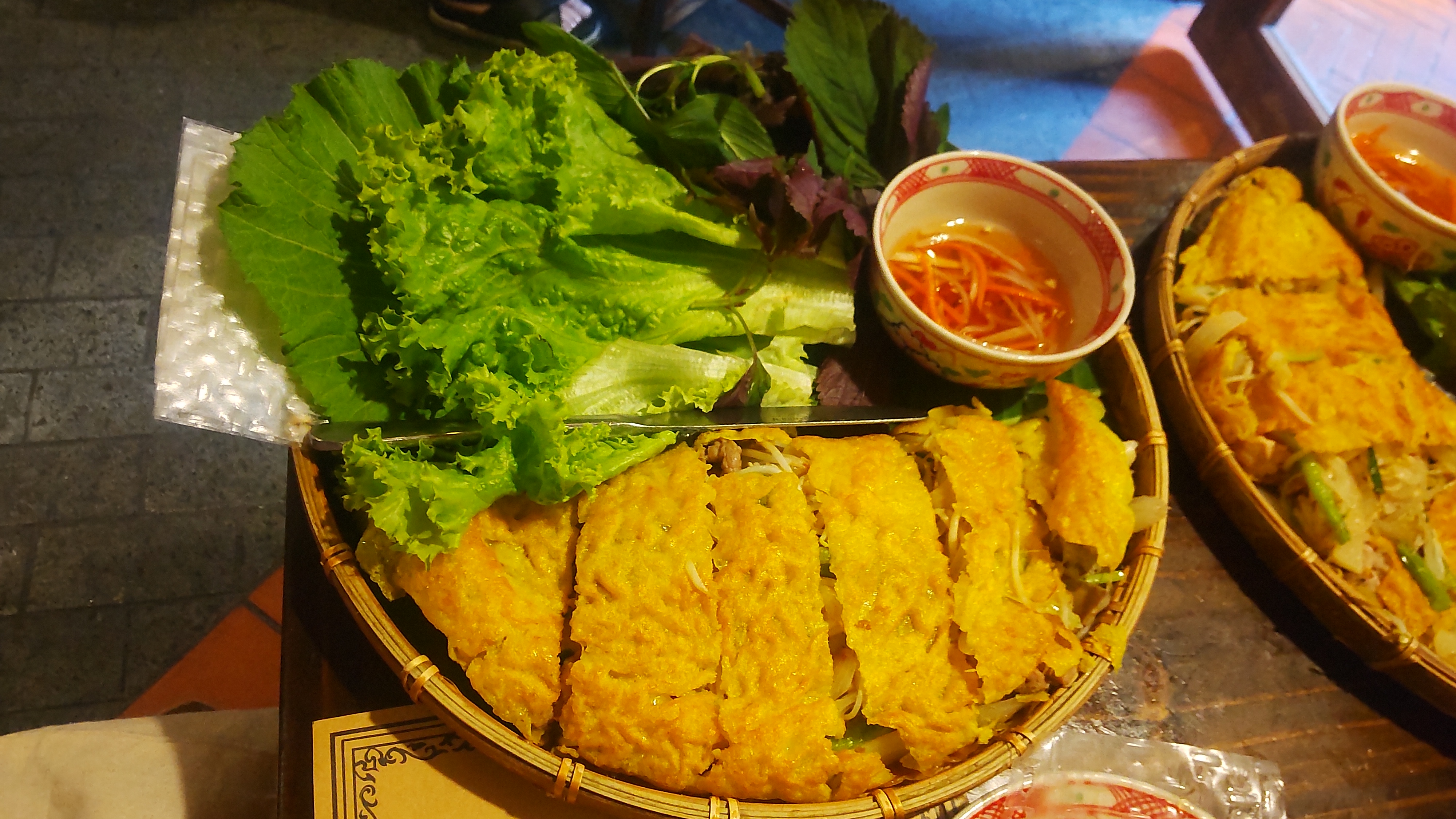 パリッとした米粉の皮と具材(代表的な豚肉、もやし、海老)、加えて野菜に薬味、そしてヌクチャム(酢やヌクマムを混ぜたもの)がいかに調和するかが重要。