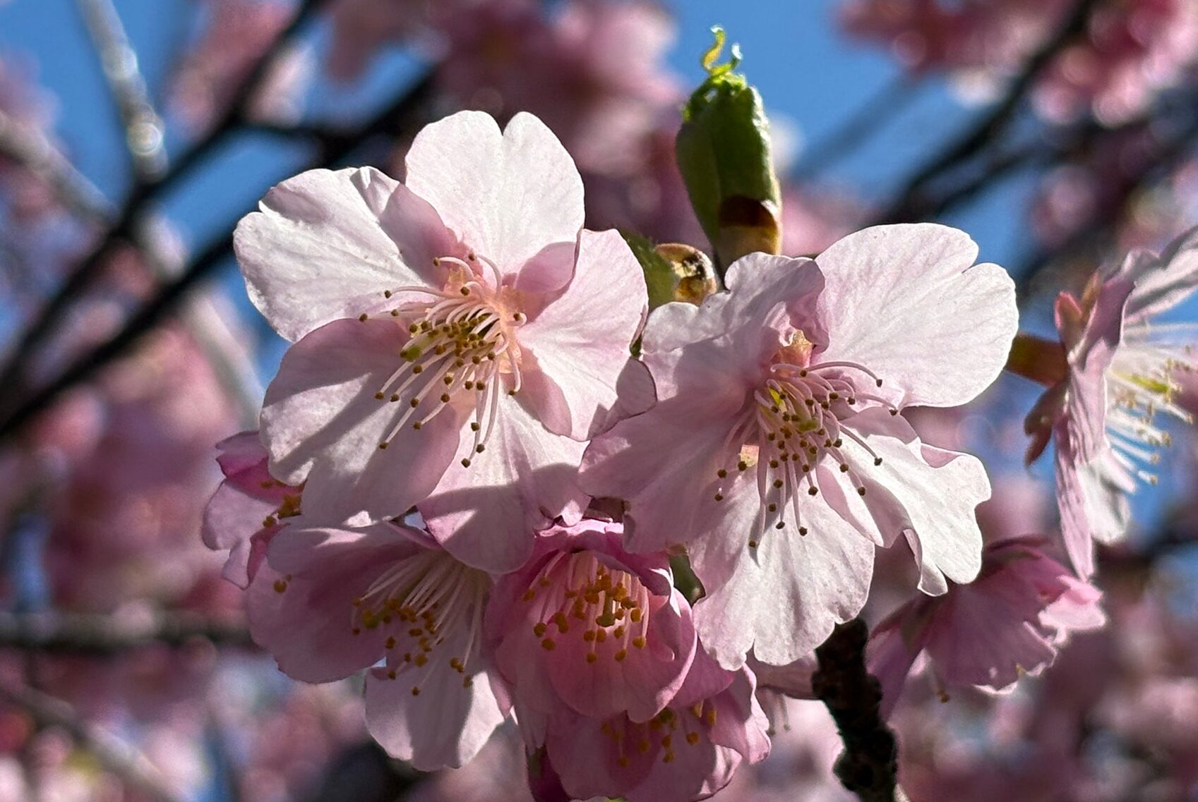 この式根の河津桜、季節違いの秋や冬に咲いていることも、ままあるのが御愛嬌。ちょっと頭の片隅に入れておいてくださいね。