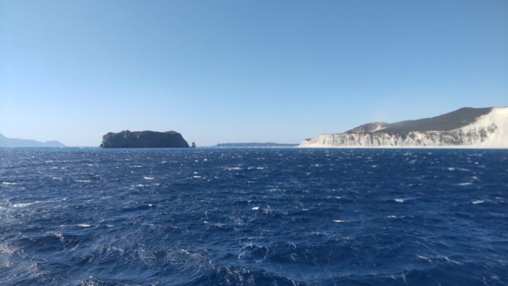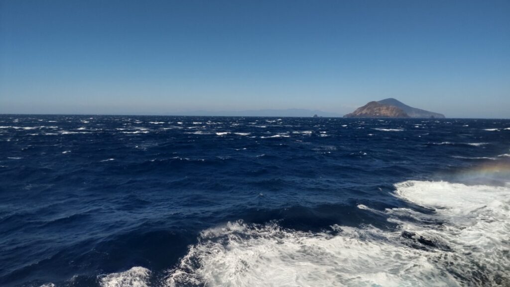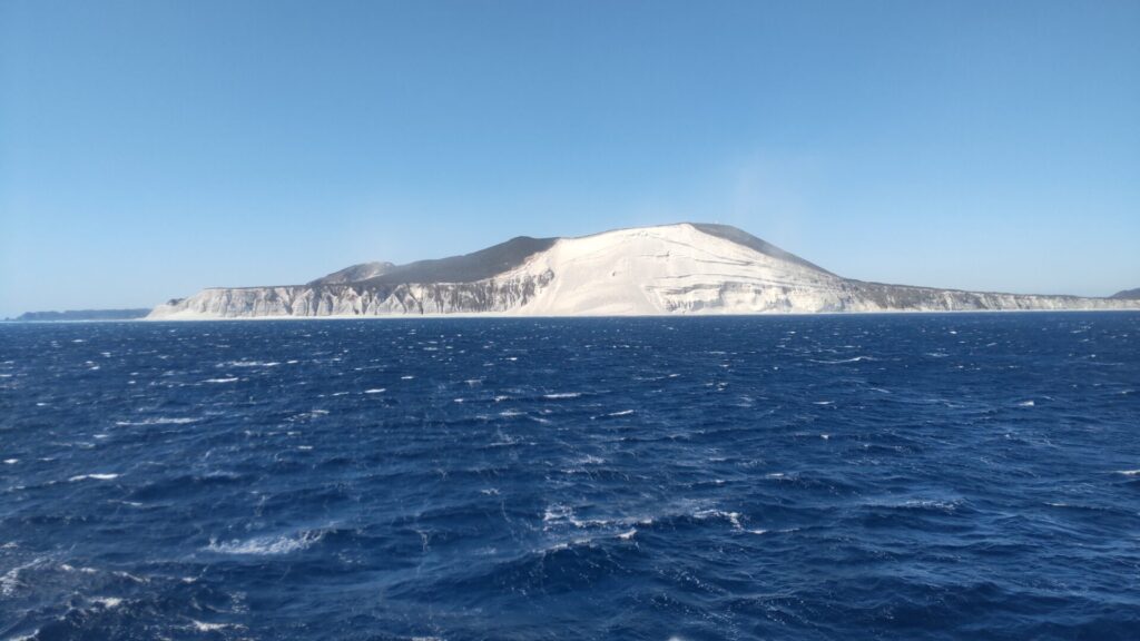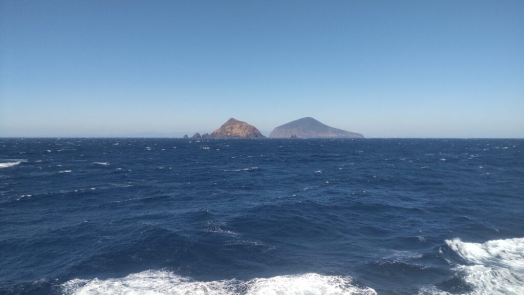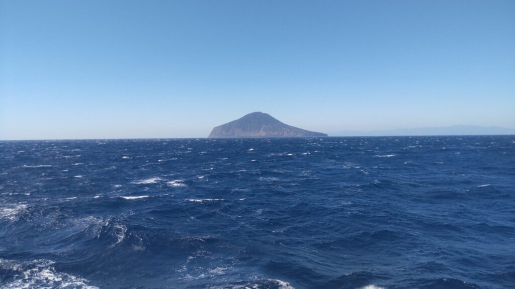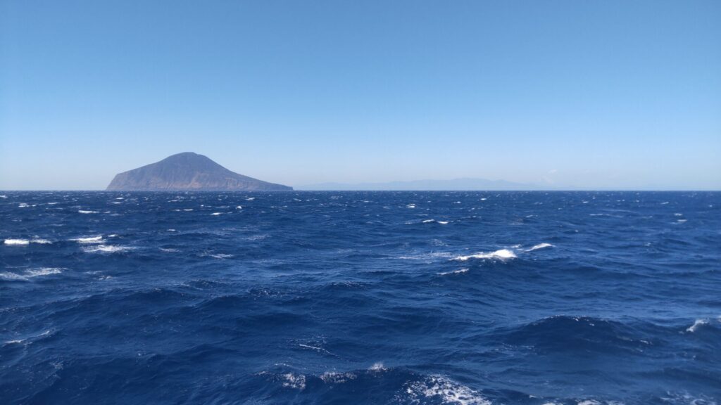 さて、多幸湾は神津島で天候が悪ければ、上り便が就航する日でも利用されるのだが、ここからが朝便のみの本番。先述の通り、式根島、新島、利島は寄らず、大島へ直行するのだから、通常の航路を辿る必要はない。西風が強いなら、島の東側を通るのが妥当であろう。すると、知ってる島なのに見慣れない景色が次々と現れる。