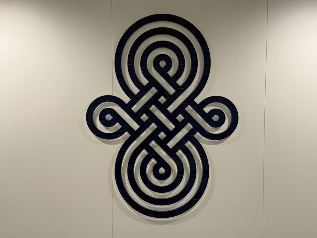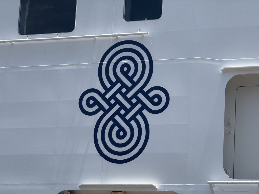 随所に描かれている文様は「結び目を表す」この130周年ロゴは美術家の野老朝雄さんにデザインいただいたもので、船にとって必要不可欠であるロープの「結び目」を表現しています。