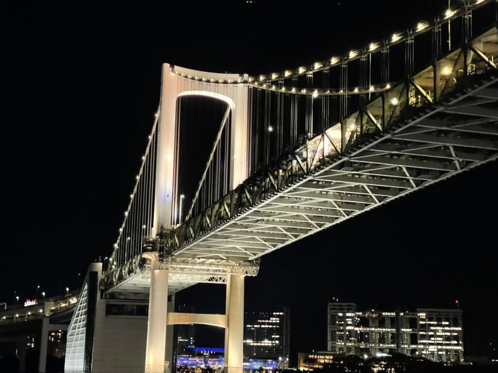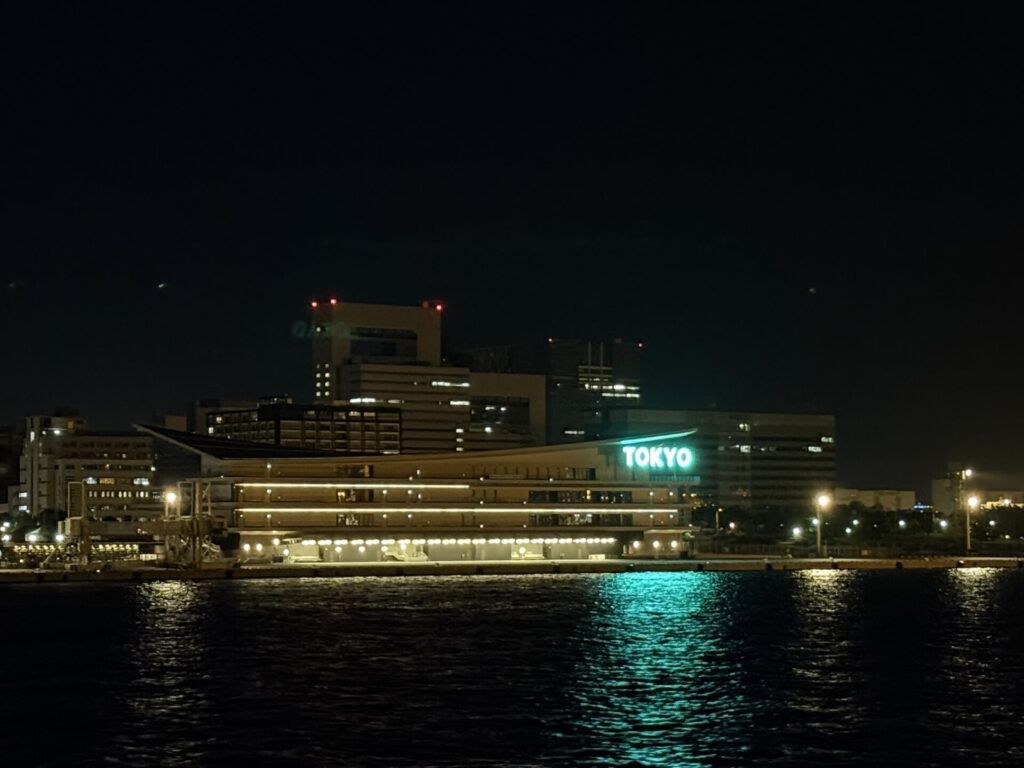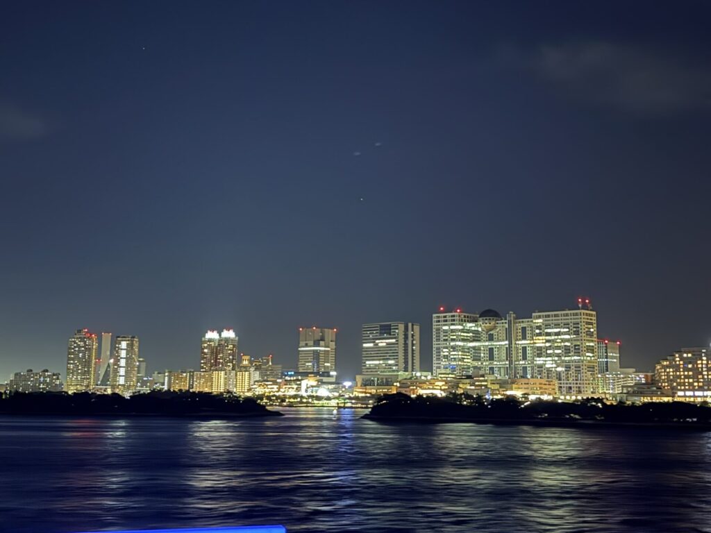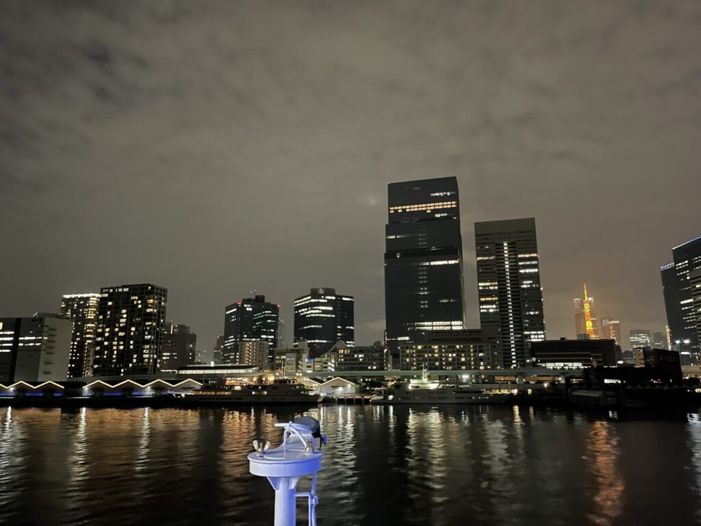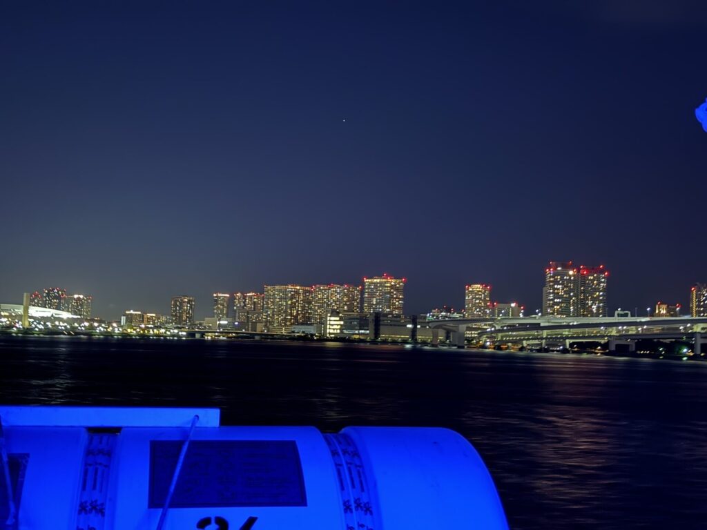 夜行のさるびあ丸のお楽しみは、湾岸クルーズそのものの東京の夜景です。6Fデッキから眺める人が多く、位置によって見えるものも異なってきます。