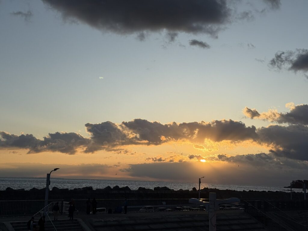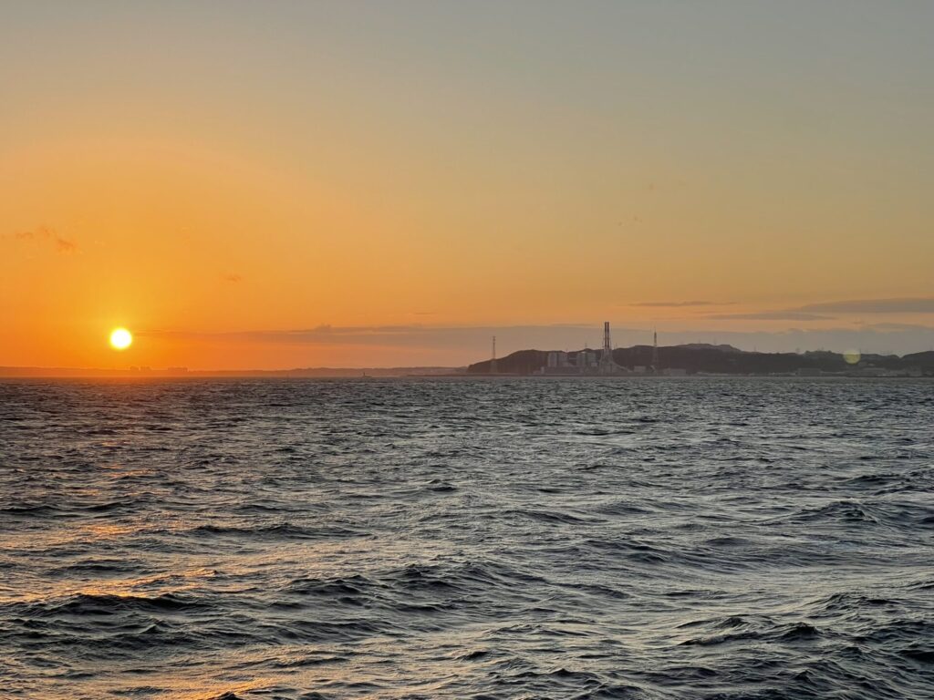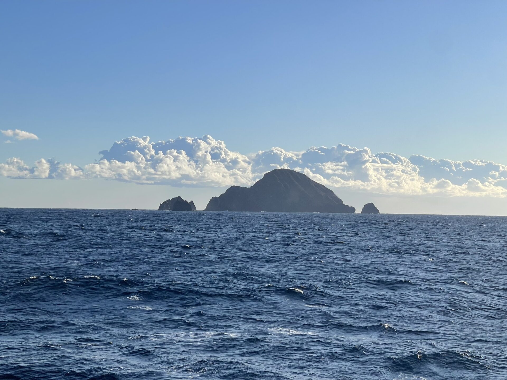 翌朝のさるびあ丸のお楽しみは、次々現れる有人・無人の島々や日の出日の入り、天体イベント、トビウオやクジラ、イルカ、海鳥が見られることです。生物観察については、双眼鏡やカメラを携えたガチの愛好家もよく乗船しています。