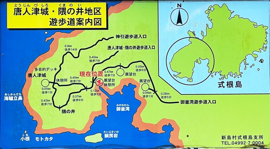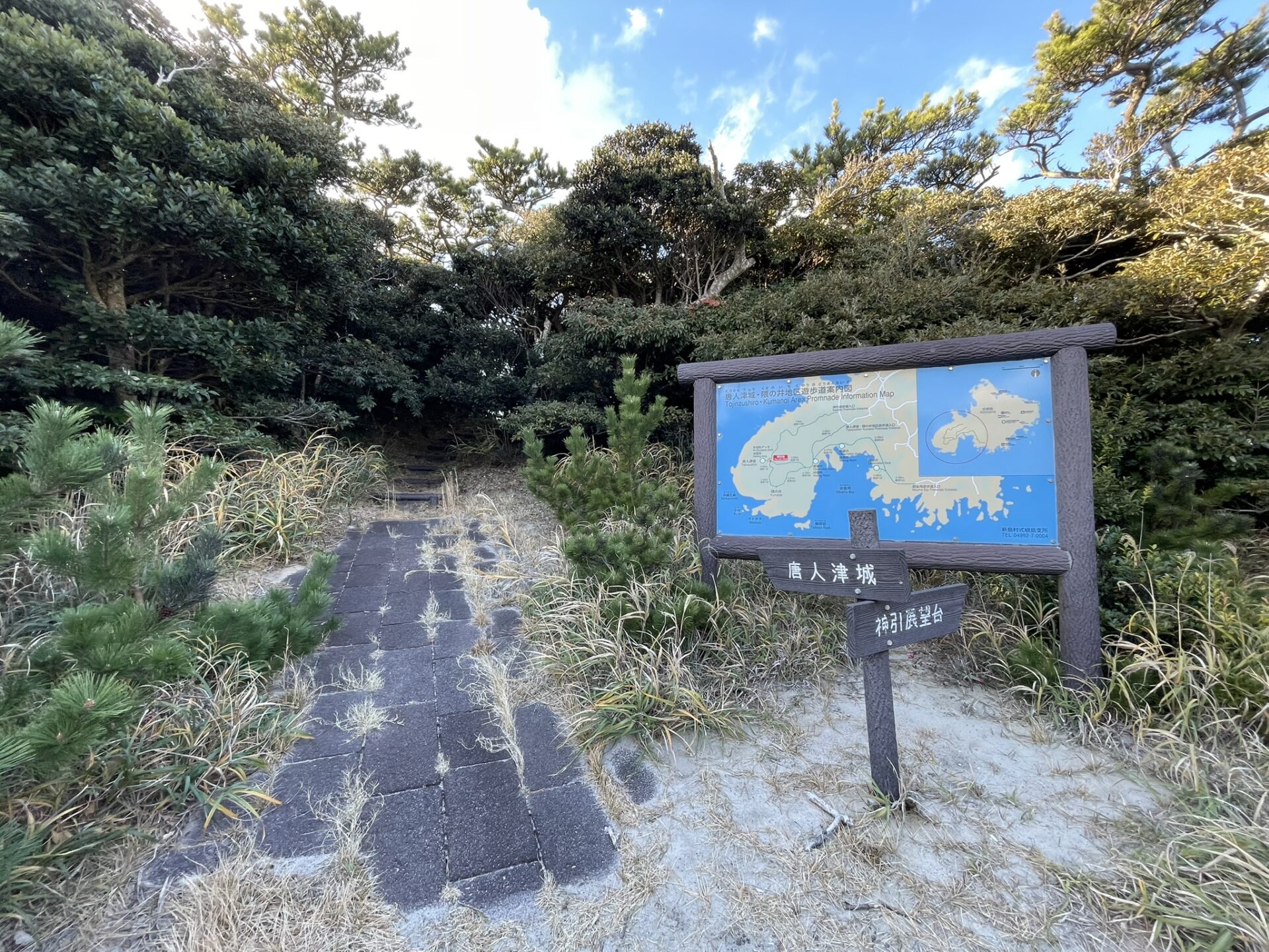 唐人津城には、神引展望台駐車場そばの入口から入るルートと、唐人津城・隈の井遊歩道入口から入るうルートの2つの行き方があります。