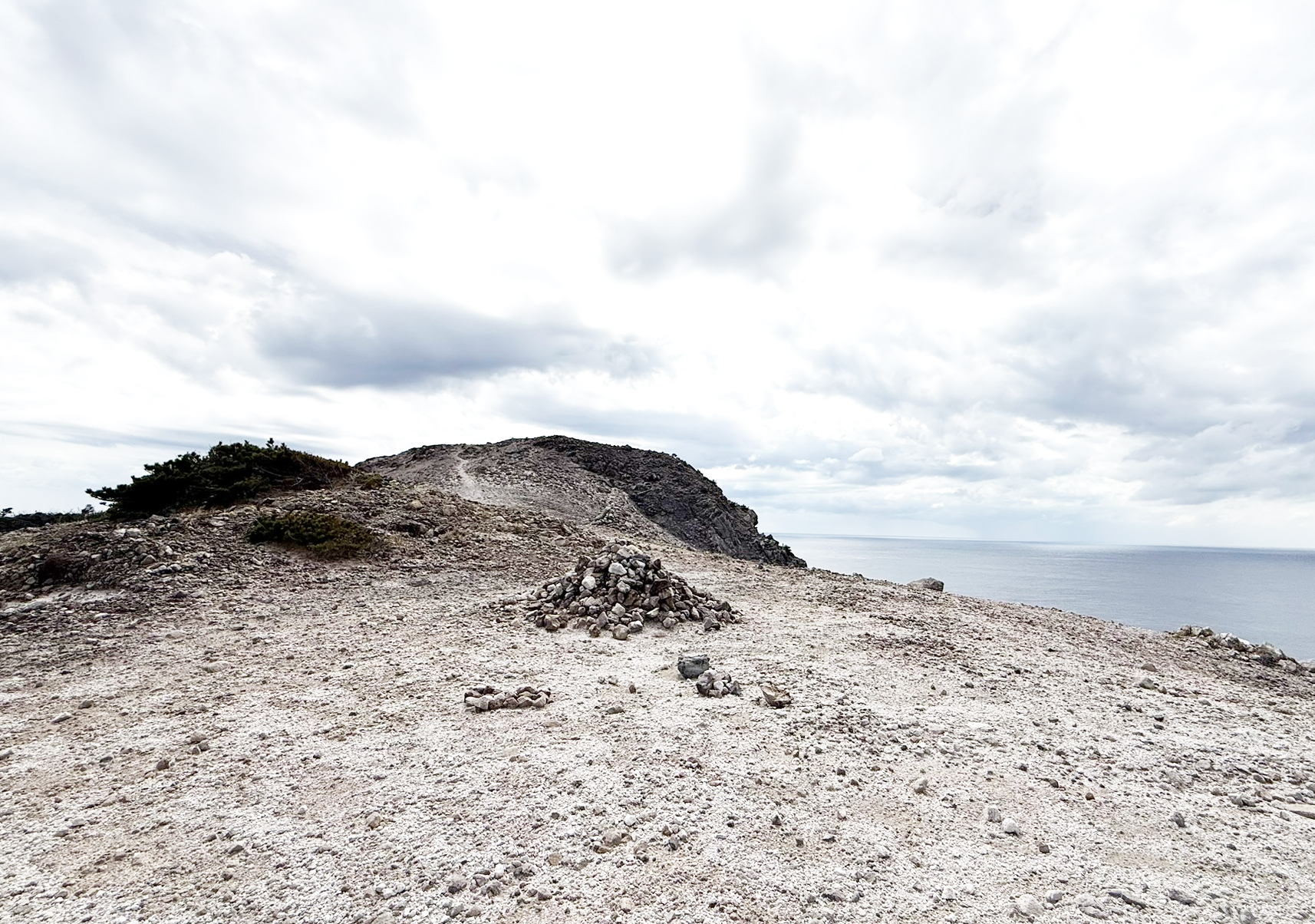 B地点にはケルンがあり、稜線の向こうは断崖絶壁です。風が強い日は危険なので登ってはいけません。