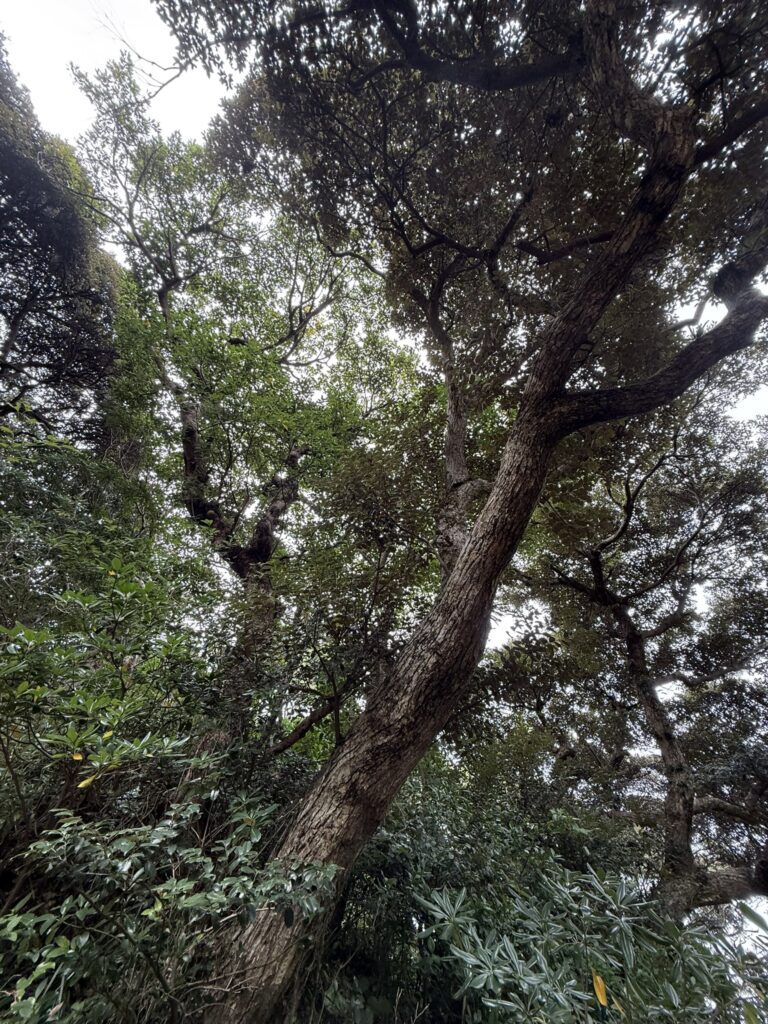 式根島の原生林の代表的な樹種は、スダジイとタブノキなど、暖地に生える常緑広葉樹です。