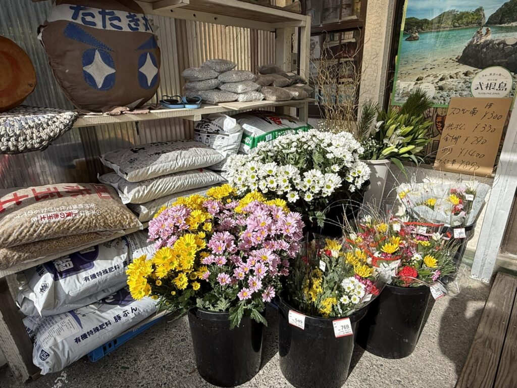 お正月にいける生花に加え、普段は造花のお墓(だんとう)用仏花も、生花が売っています。
