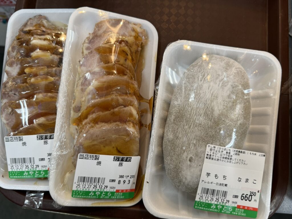 食料品を販売する商店は、年内はがっつり営業してくれます。正月も2店は開いていますので、買い物に困るということはありません。この時期、式根島は帰省する人々で一時的に島内人口が増え、あちこちで集まって飲食を楽しむ事自体がメインの過ごし方になっています。おせち食材はもちろん、パーティ向けのご馳走惣菜、式根の伝統的な食材などが店頭に並び、たくさん買い込む島民が目立ちます。