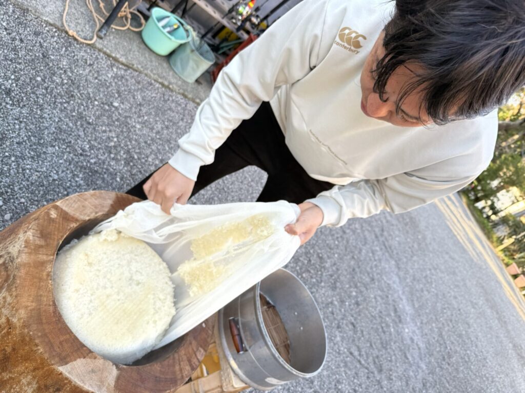 かつて、式根島では正月の鏡もちやお雑煮のための餅つきが盛んでした。島の特産のアメリカ芋とよもぎをついて作る芋餅は島の郷土料理です。現在は、餅つきをする家は減りましたが、それでもちらほらと昔ながらの風景が見られます。