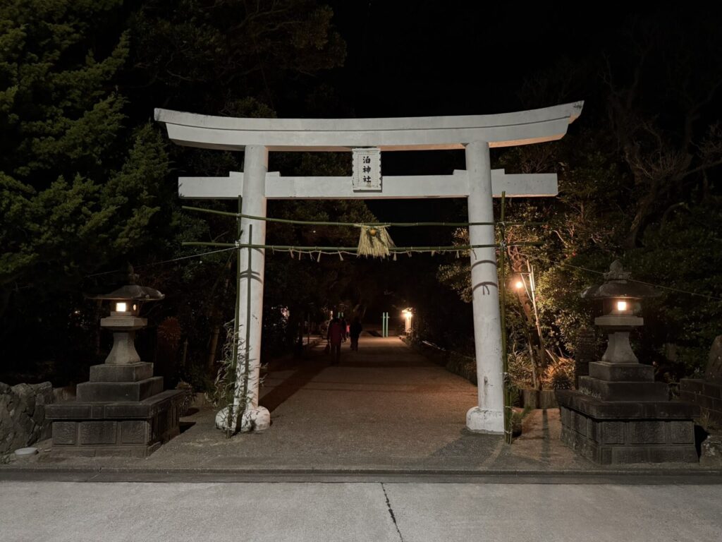 式根島の島民は、島内一大きな神社である泊神社に初参りします。御朱印やお守り等の販売はありませんが、年越しの夜はお汁粉の振る舞いがあり、遅くまで人が絶えません。