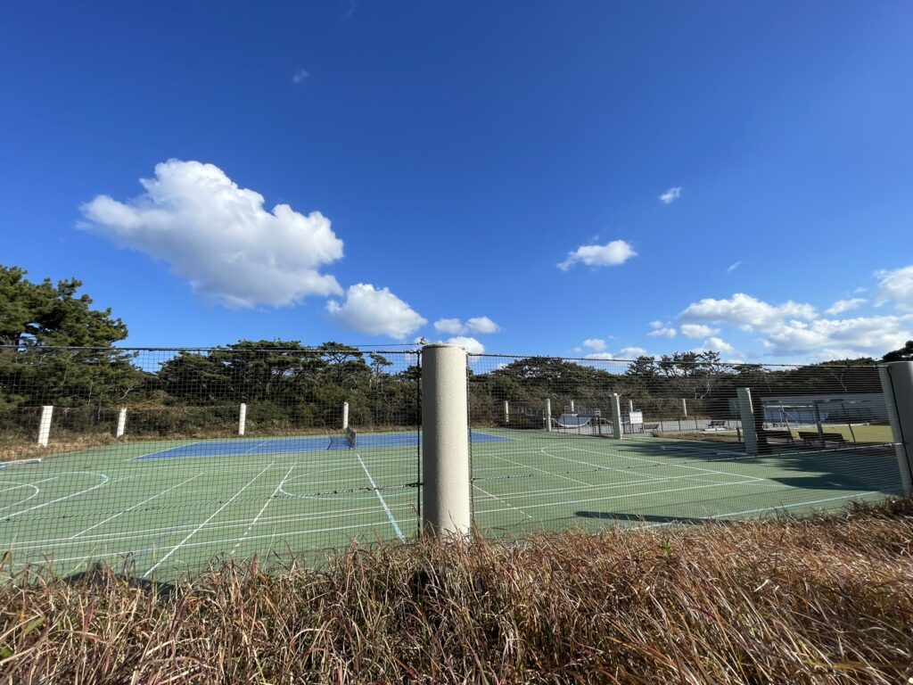テニス、フットサル、バスケットボール、ソフトバレー、スケートボードが楽しめる新島村のスポーツ施設。必要な手続きをすれば観光客も利用OK。