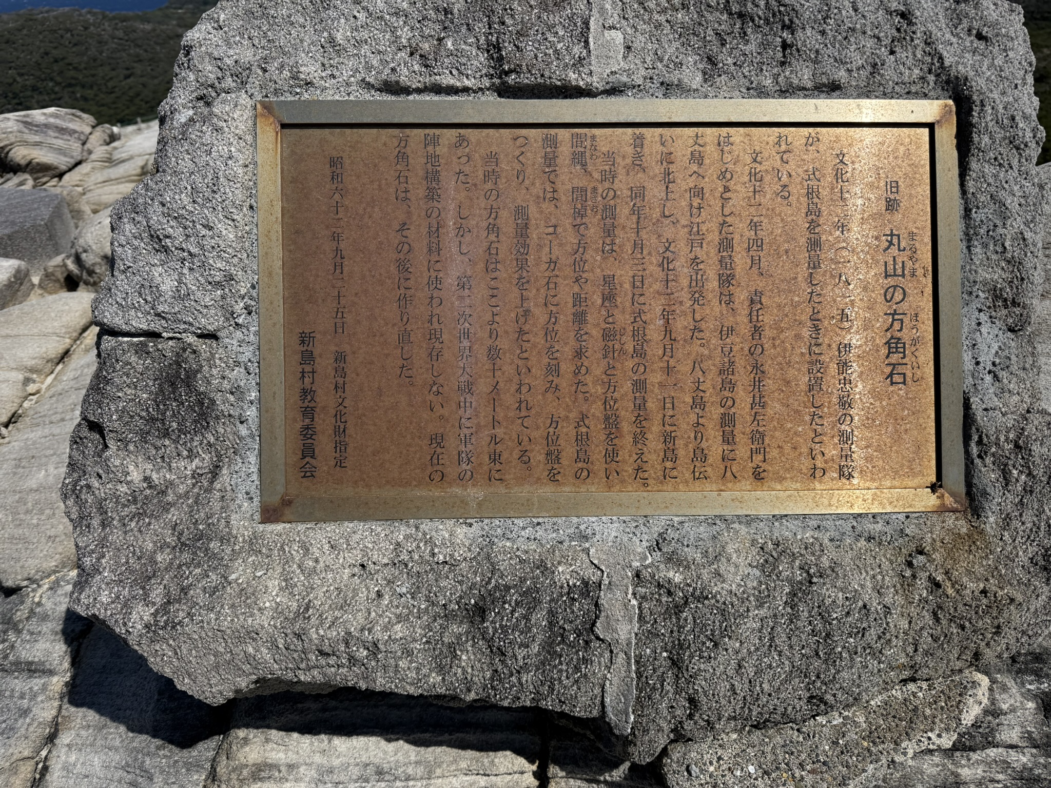 丸山頂上には江戸時代に伊能忠敬の測量チームが置いたと伝わっている方角石のレプリカと説明書が設置されています。