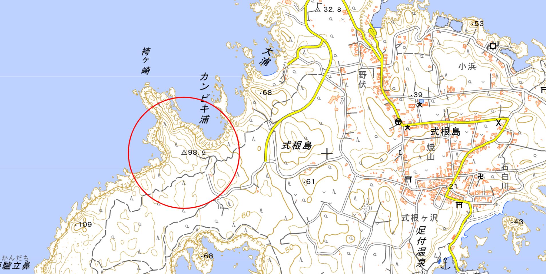 丸山(98.5m)ではなく、島の南西部にある「佐々木山(109m)」が最高地点です。より「踏破」を意識するなら、唐人津城から佐々木山を目指すルートも併せて検討してください。