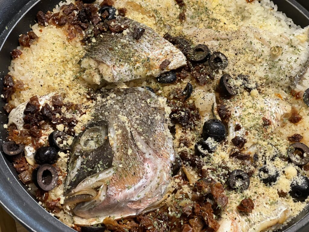こちらは、半身を残して[洋風]式根鯛平君/鯛めしセット3合に変身した鯛平君。1匹1500円の鯛で、調味料や副材料が揃っていれば、ここまでできます!鯛めしは明日のご飯やおにぎりにもなります。洋風バージョンは、ワインのつまみにも・・ご飯でワイン、若干危険ですが、やむを得ません。