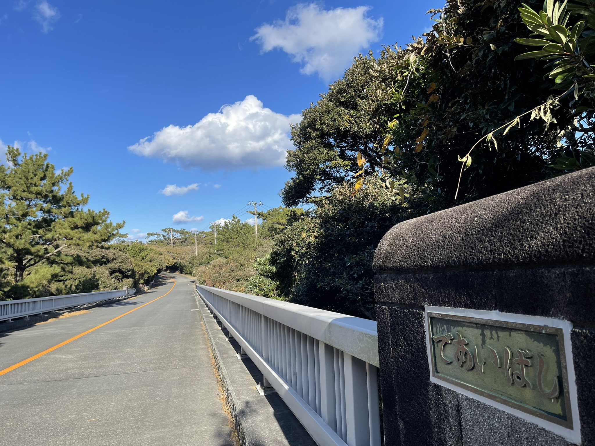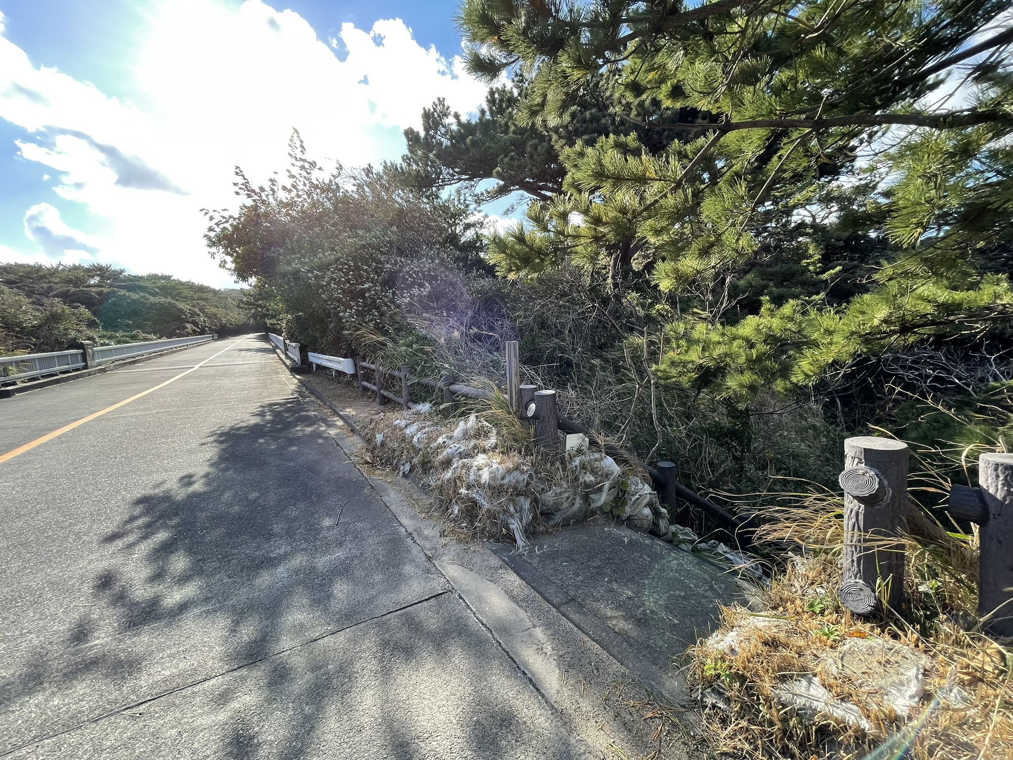 出逢い橋は東京都道237号式根島循環線(式根本道)の西側にかかる橋で、自転車を停める空き地もあるので、起点にすると便利。この橋の北側に大浦海岸へ方面へ向かう道路に降りられる階段がある。