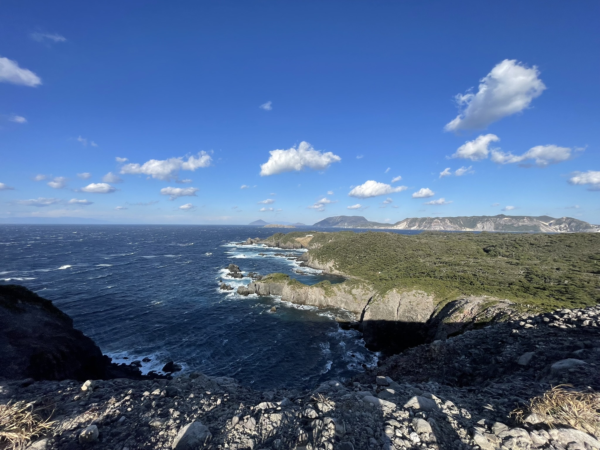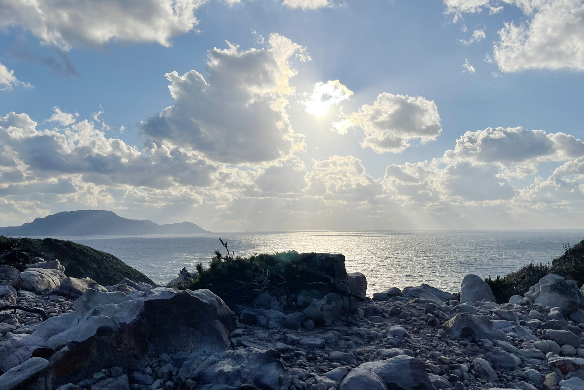 式根島は、約1万年前に噴火した式根島火山の活動により生まれたリアス式海岸や火口跡に広がる白い流紋岩質の砂漠など絶景・奇景の宝庫です。島の北側から西側をぐるっと回って南側まで歩く遊歩道が整備されていますので、ぜひ歩いて式根島の大自然を体感してみてください。島中のスポットをすべて歩くと、1日がかりになりますが、2日に分けて、各スポットでお弁当を食べたり、休憩をしながら、のんびりハイクがおススメです。