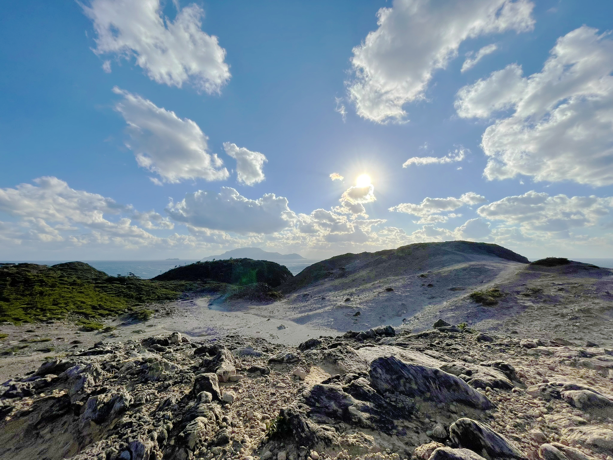 式根島の奇勝・白岩の砂漠が広がる唐人津城