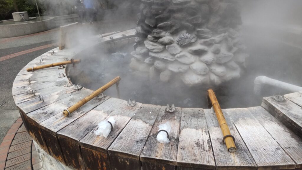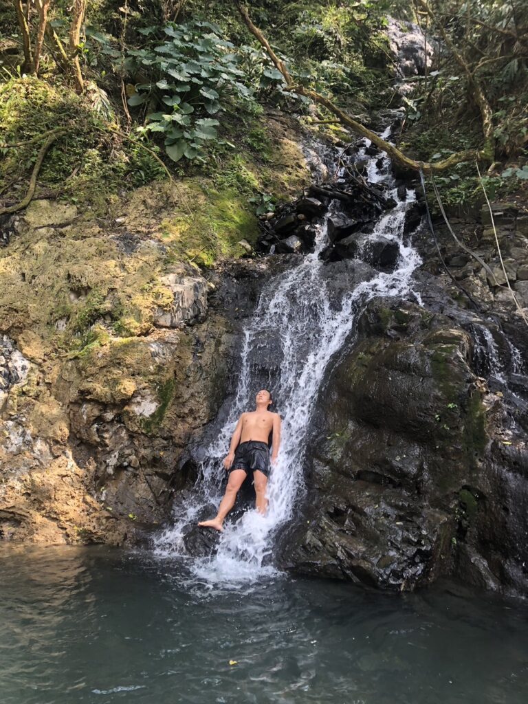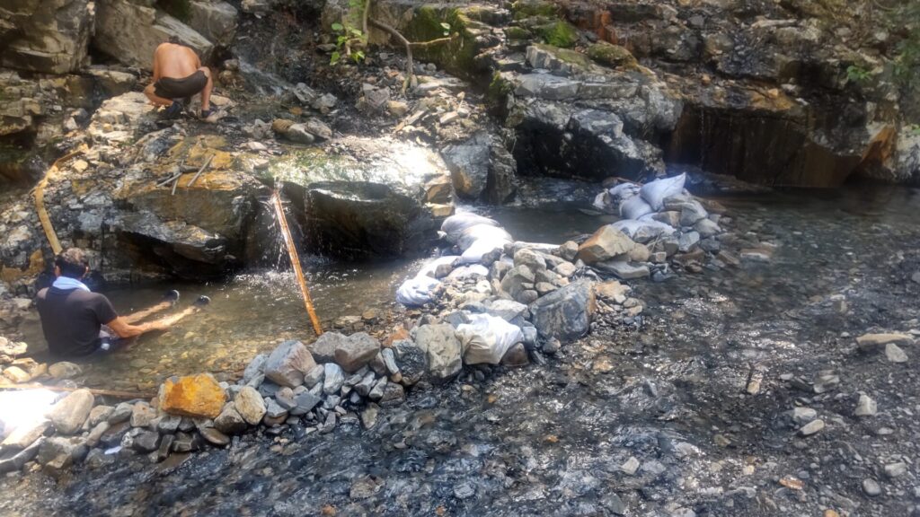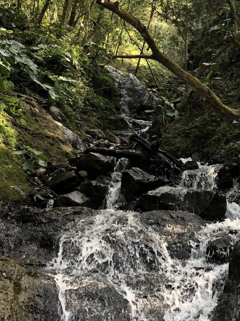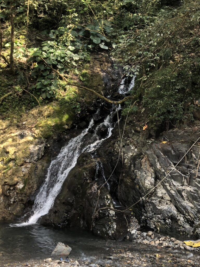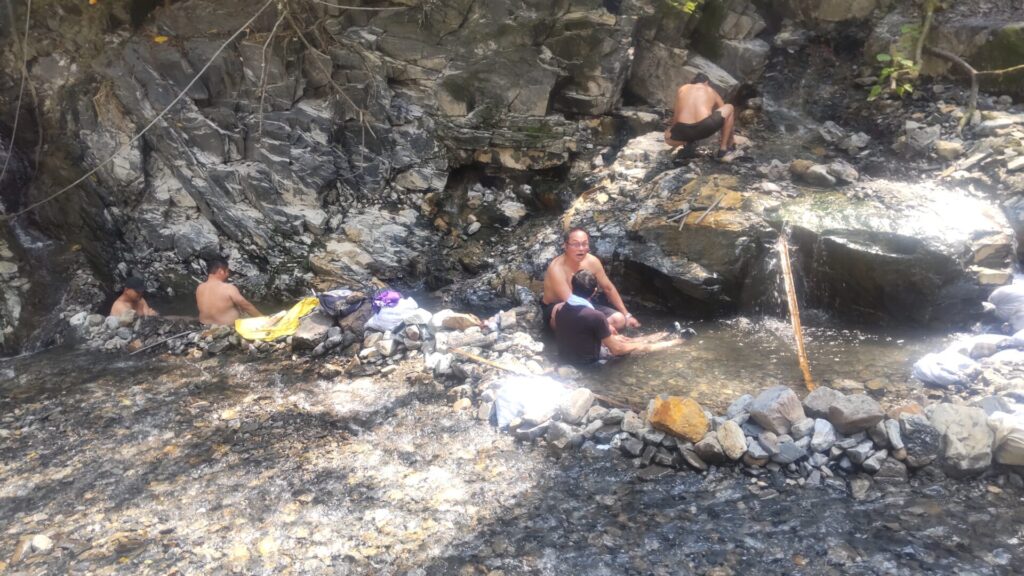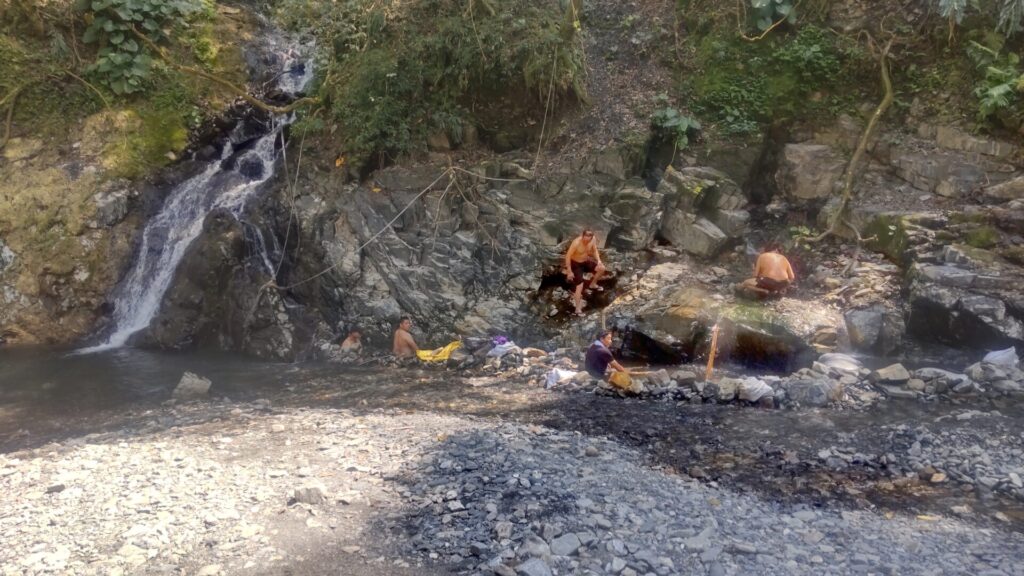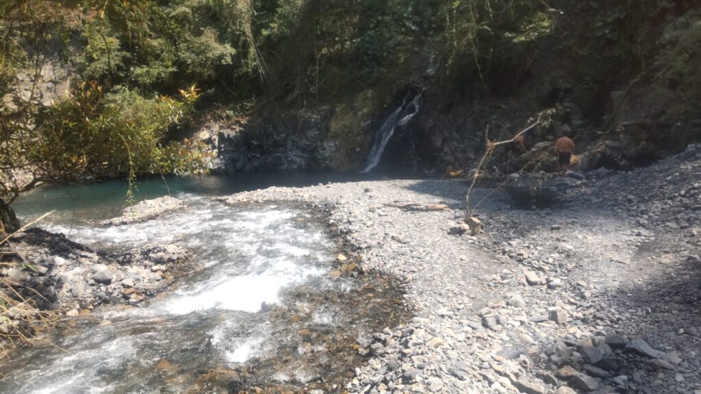 滝の上流で温泉と川が混ざっていて、この日は適温だった。