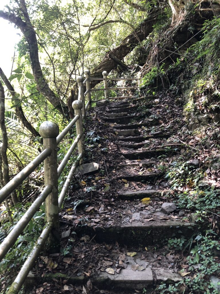 そこから延々と急な坂を下りて、急な階段を下りて、獣道を降りて…。