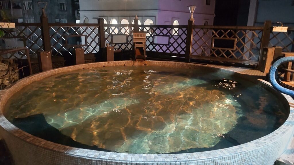 その日は礁渓の露天風呂付温泉宿に宿泊。