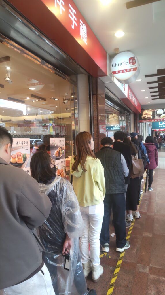 パイナップルケーキを買いに列を作る。