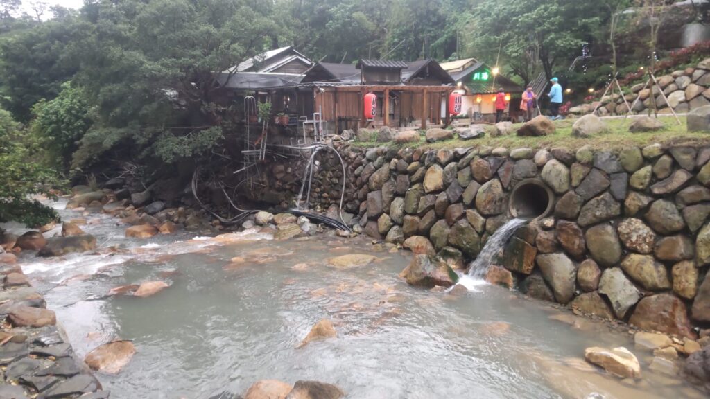 と、川辺に温泉が。