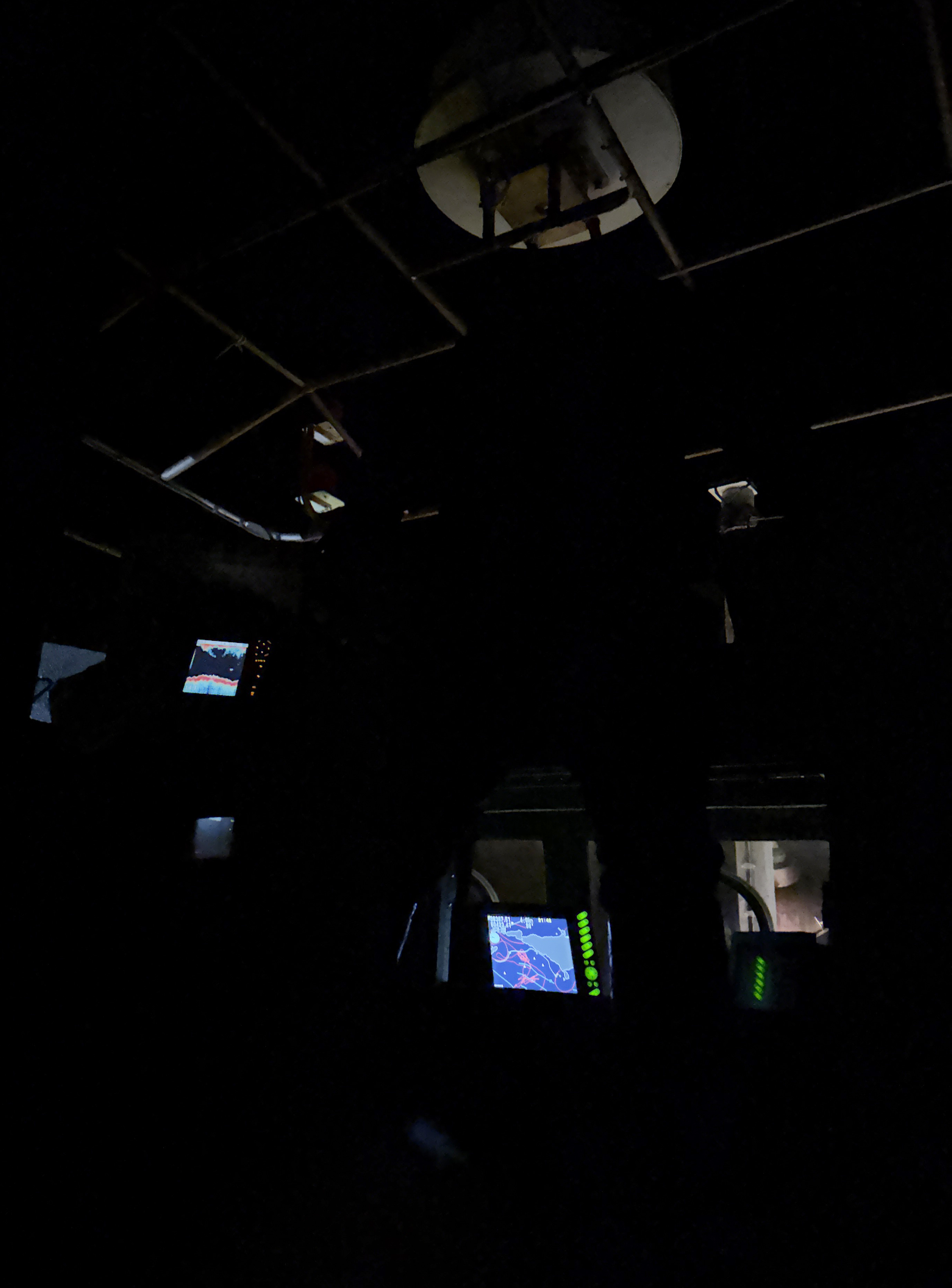 式根の漁師が古くから縄張り(アンド)としている鵜渡根島につきました。タカベは瞬間的な光で群れを散らす習性があるので、灯りを落とした暗闇のなか、魚群探知機を頼りにタカベの群れを探します。