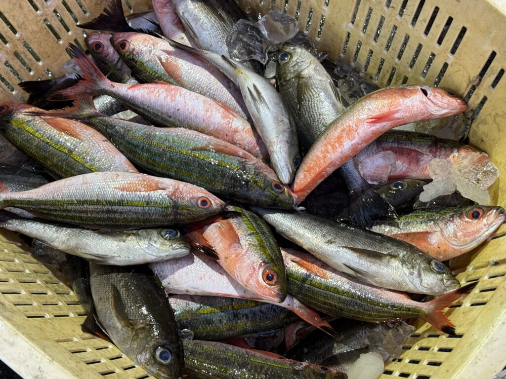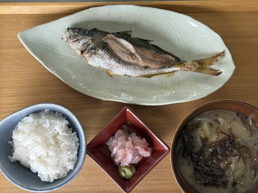 タカベの漁期(新月周りの凪)は島内の民宿などで食べる機会があるかもしれません。また、式根島で上がったタカベは豊洲市場に出荷され、関西には回りません。気になる方は「式根島 タカベ」で検索してみてください。