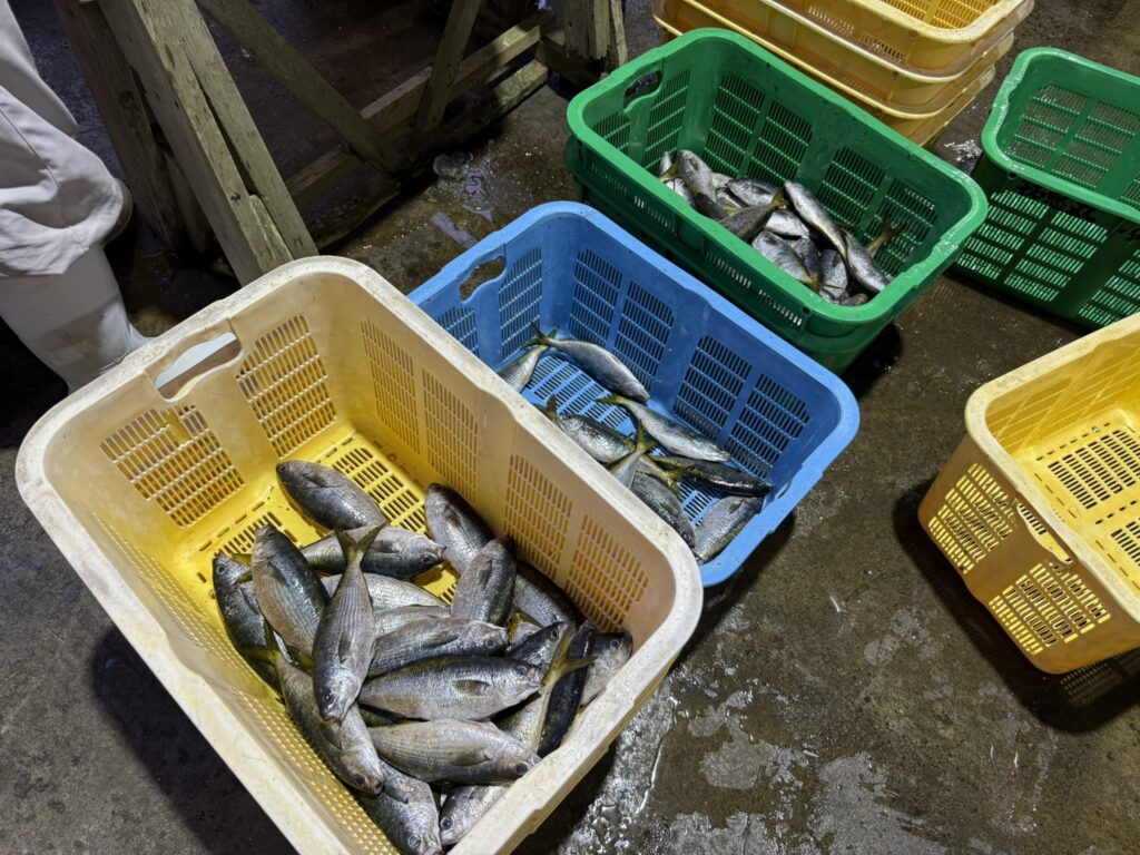魚種、特大・大・中・小、傷物で分けていきます。