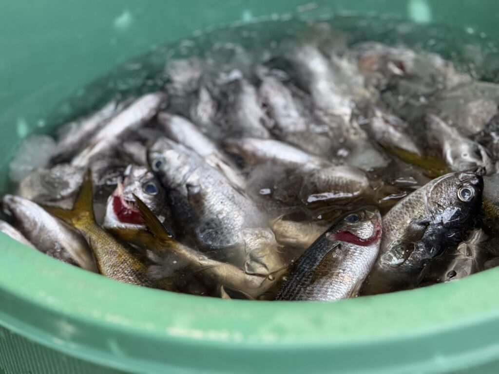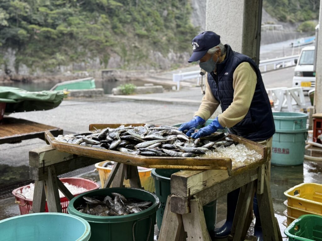 今回取材させていただいた漁師の百井さんに尋ねると「一隻だからなんとかなるが、複数の船があったら資源を分け合うので、充分ではない。」という答えが帰ってきました。かつて、船団を組んでタカベ漁をしていた時代を念頭に置いてのことでしょう。