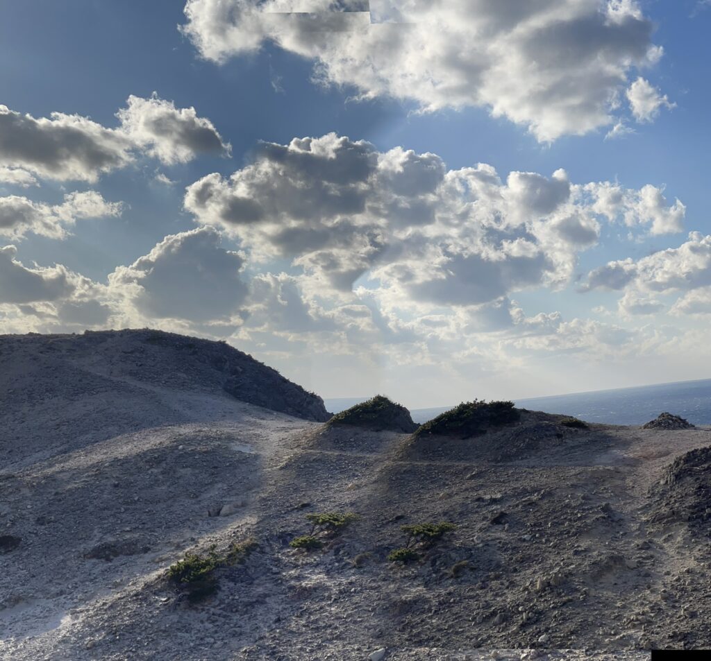 式根島の奇勝・白岩の砂漠が広がる唐人津城