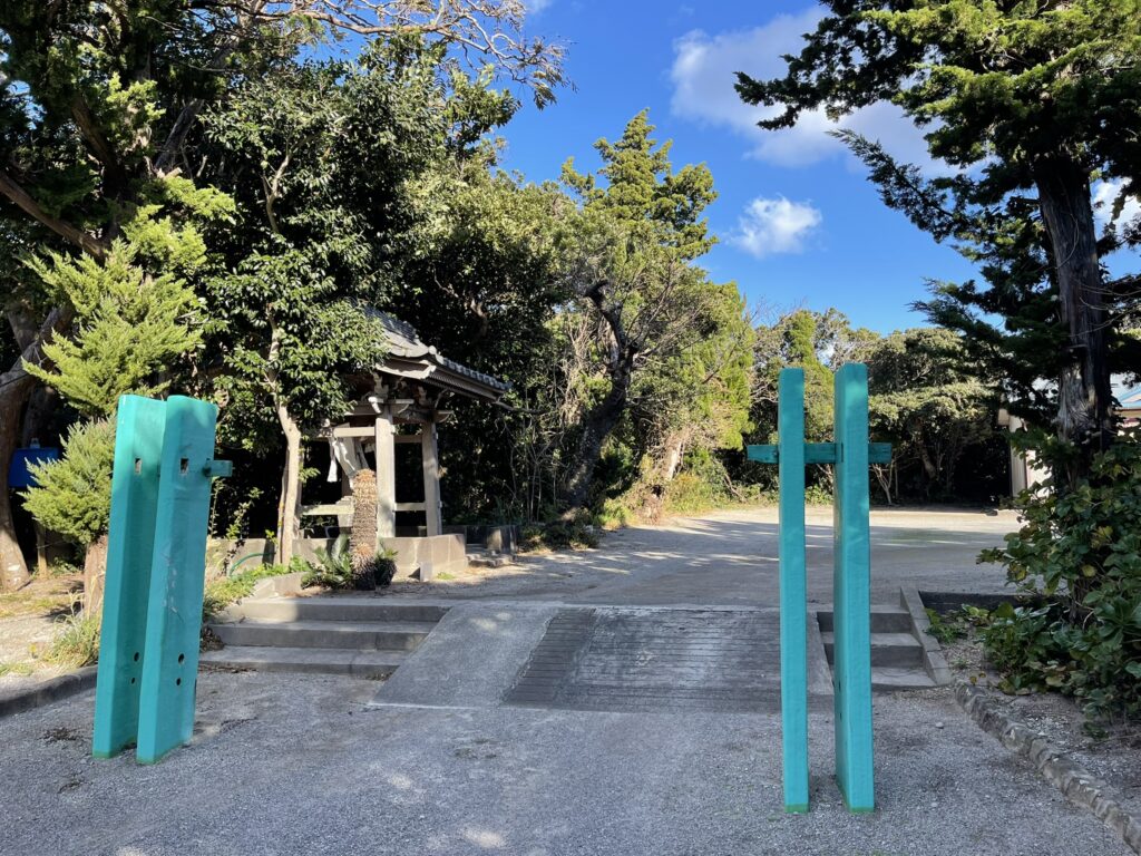 白鳥居と白砂の境内が美しい式根島の鎮守