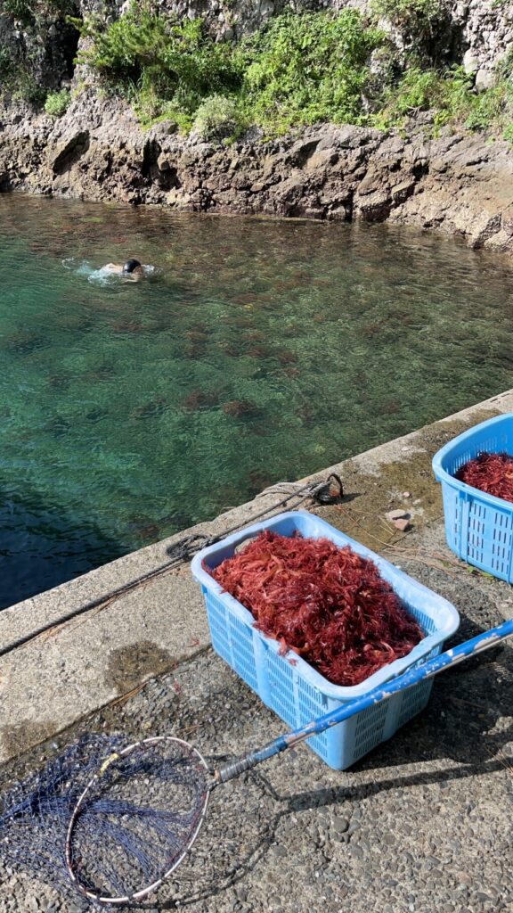 梅雨はいずこへ、という大晴天の6月の式根島。涼し気な?トサカノリ漁の風景をお届けします。