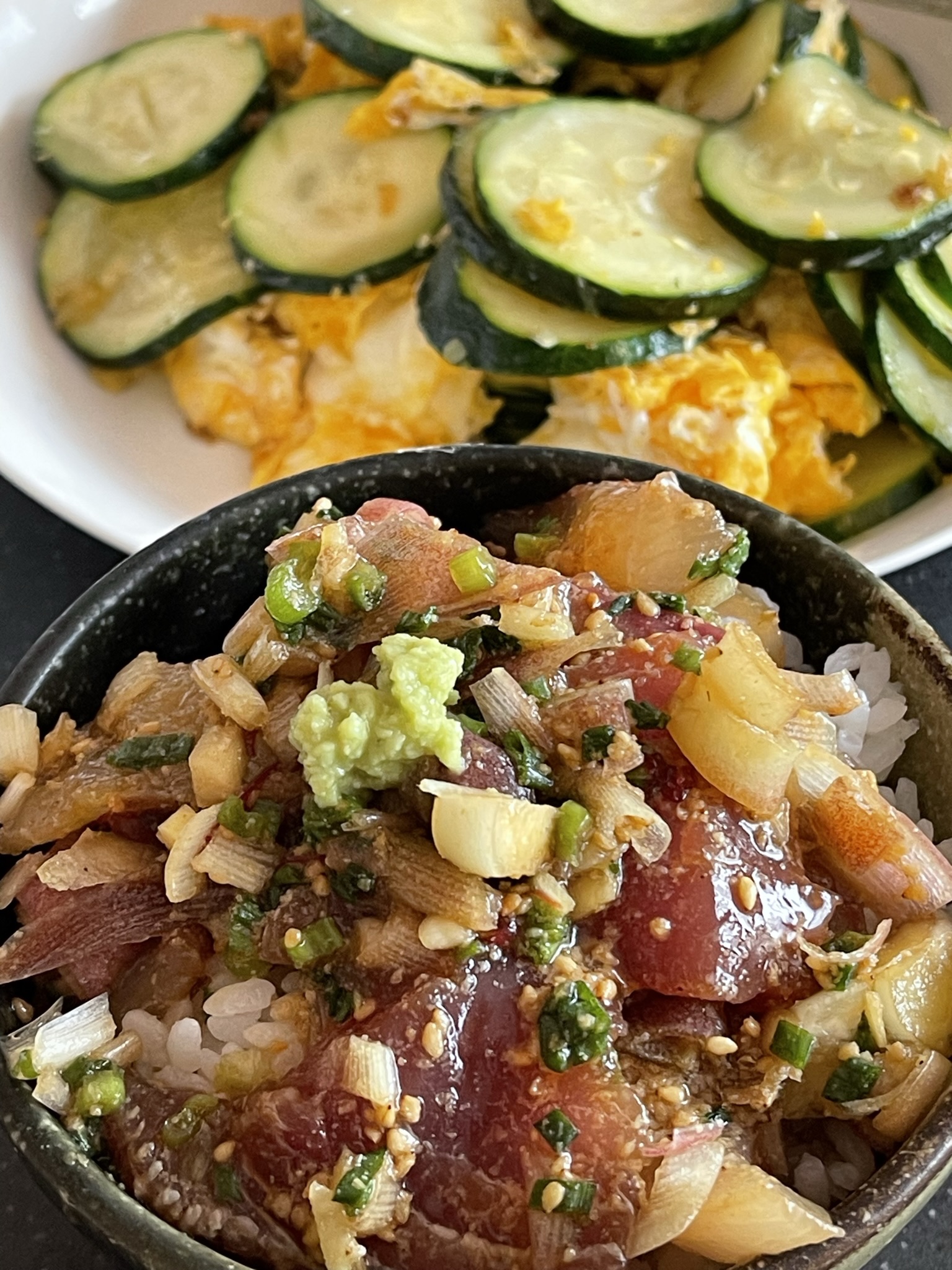 ・刺盛りの残りの魚で漬け丼→半分食べて、出汁かけて茶漬けに