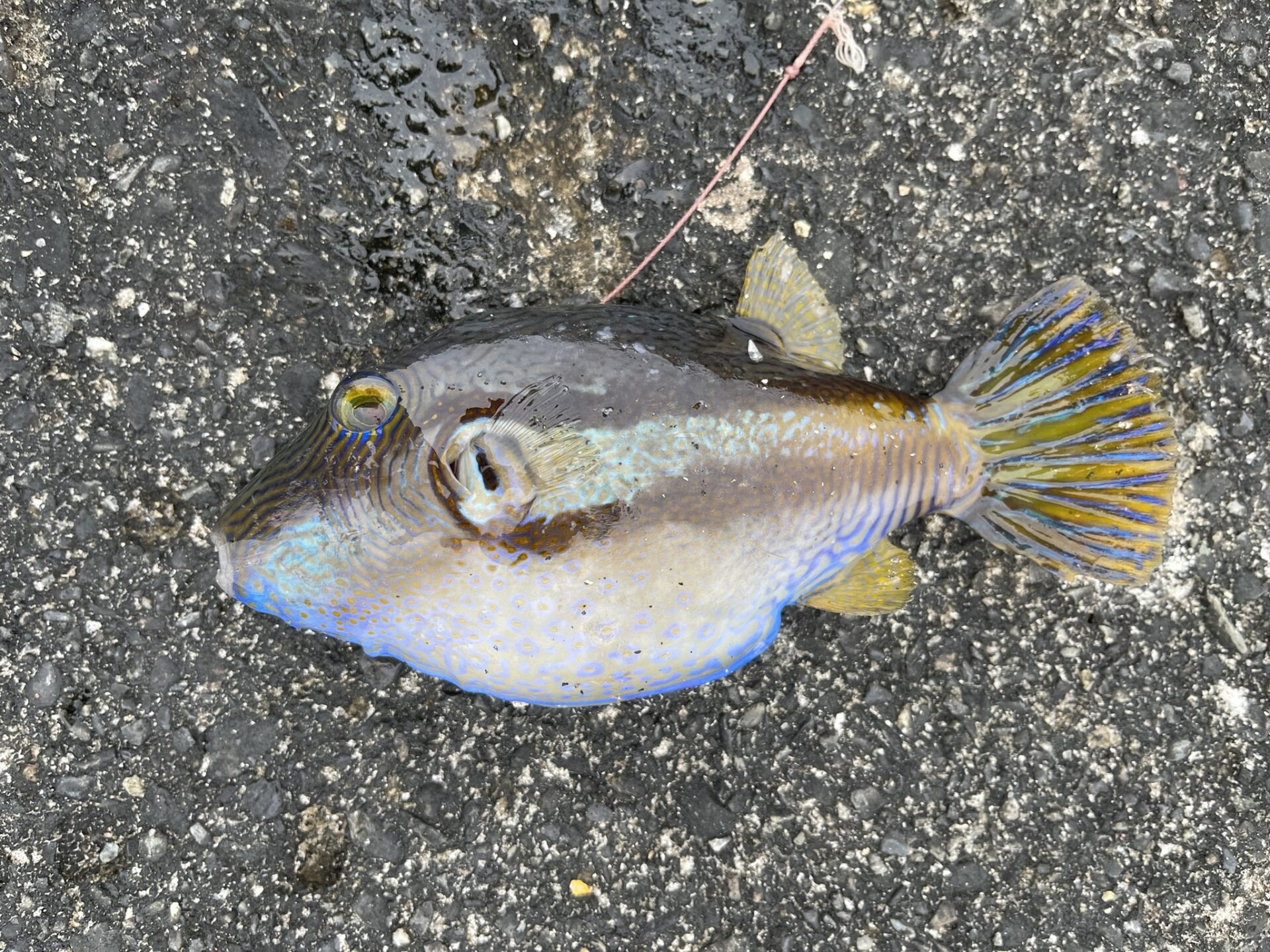 そんな会話をした翌日。私が桟橋でイシガキダイ狙いの足元釣りをしていると、彼が来ました。
