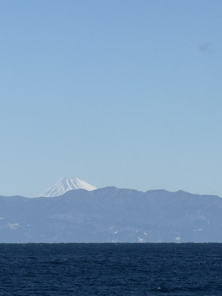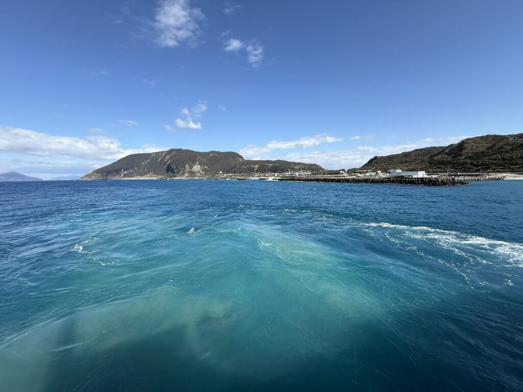 式根島に到着しました。週末ながら、お迎えの数がとても少ないです。いい天気なのになぁ。