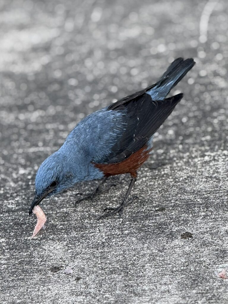 誰もいませんが、こぼれたオキアミの掃除をしてくれるイソヒヨドリが、ずっと傍らにいてくれて寂しくありません。