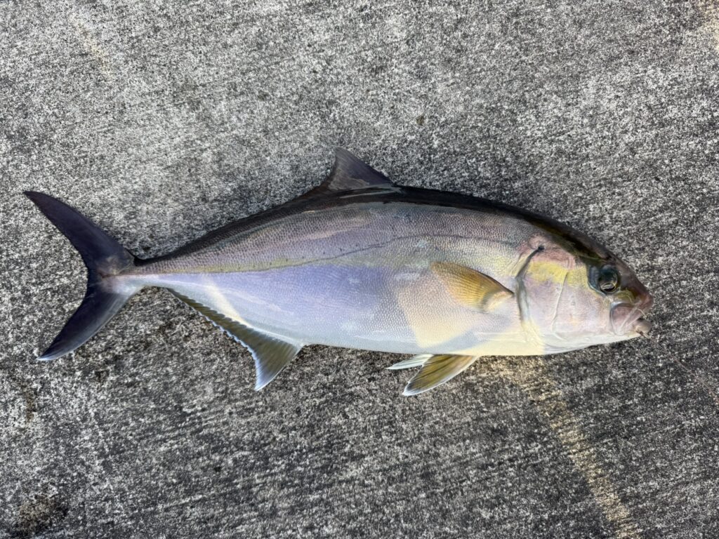 「こいつは野伏でルアーで釣る魚だろう~」と独り言をいいつつ、式根島では、たまに桟橋の壁際を舐めるように割と大きなカンパチが走っていくのを見ていたので、珍事は珍事ですが、自分なりには納得しました。