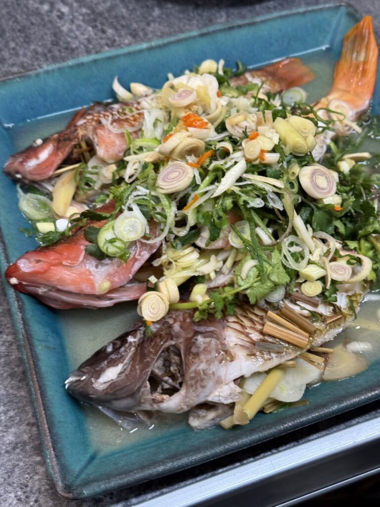 今回は世界の魚料理(中国の重慶とタイ・ベトナム)と、ひだぶん商品の「レモングラスティー」や「レモングラスとバタフライピーのブレンド・ティー」を使った料理がテーマでした