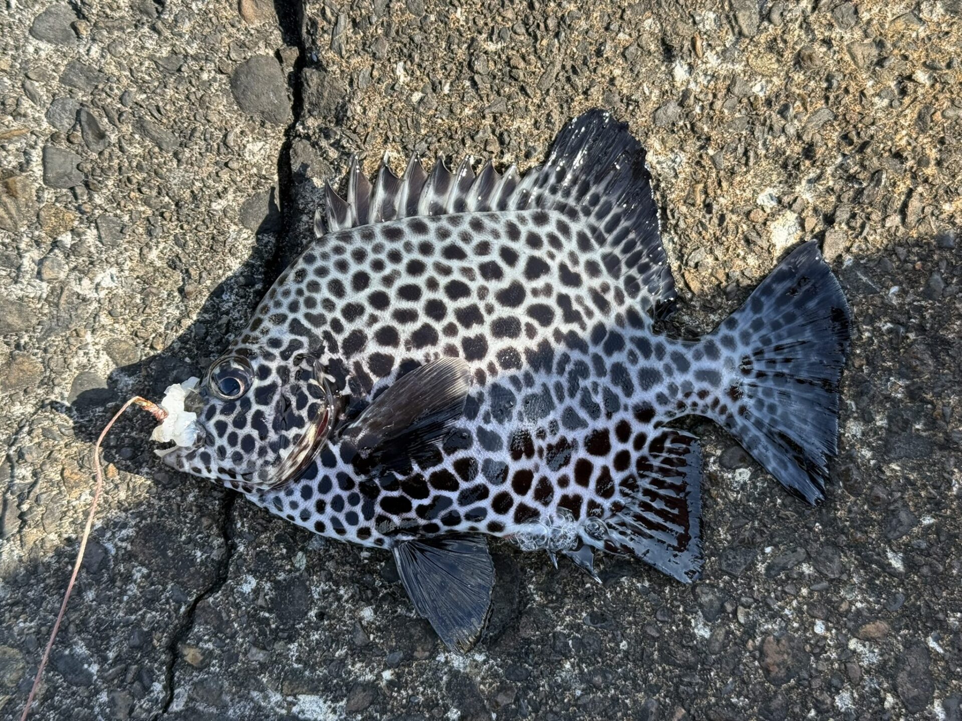 憮然とした面持ちで釣りをしていると、とうとう、式根島で見かける3種類のイスズミを見事に釣り揃えてしまいました!